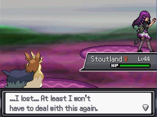 Ну даже как-то скучно. Задумка с дождём в лесу, конечно, отличная, но её светлячка уделала по скорости брейксен и сожгла всё нахуй. Алсо, мне 3ий значок вообще дадут? Я думал, с трупа тренера сниму, а его кто-то похитил.