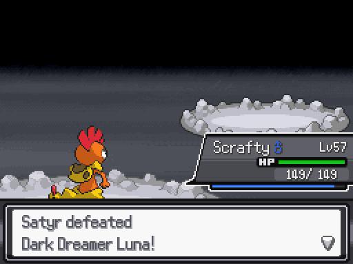 Ох и настрадался я с этой Луной. Благо, хватило ума вернуться обратно и заранее поймать скрагги и начать прокачивать с браслетом на атаку. Самой большой проблемой явился маламар, который хуярил суперпаувером и апал себе атаку и защиту. В итоге пригодился заранее пойманный карбинк, который обменялся с ним абилками, и тут же он получил по ебалу мегахорном от свежепойманного шайни бычка. Как вариант, можно было бы прокачать какого-нибудь фейри, типа флабебе, но лень выводить нормальную и возиться с ней столько уровней. Идём дальше. Комнада уже очень отстаёт по уровням от противника.