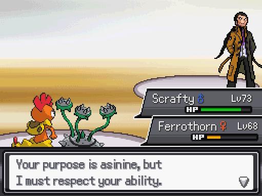 Алсо, продолжаем эпопею в реборн. На этот раз у нас гим, работающий по правилам поков 1го поколения! Стальные, тёмные и сказочные атаки превращаются в нормальный тип. Шуточки и отсылки в комплекте, такие как Нидокинг по имени Джиованни.
