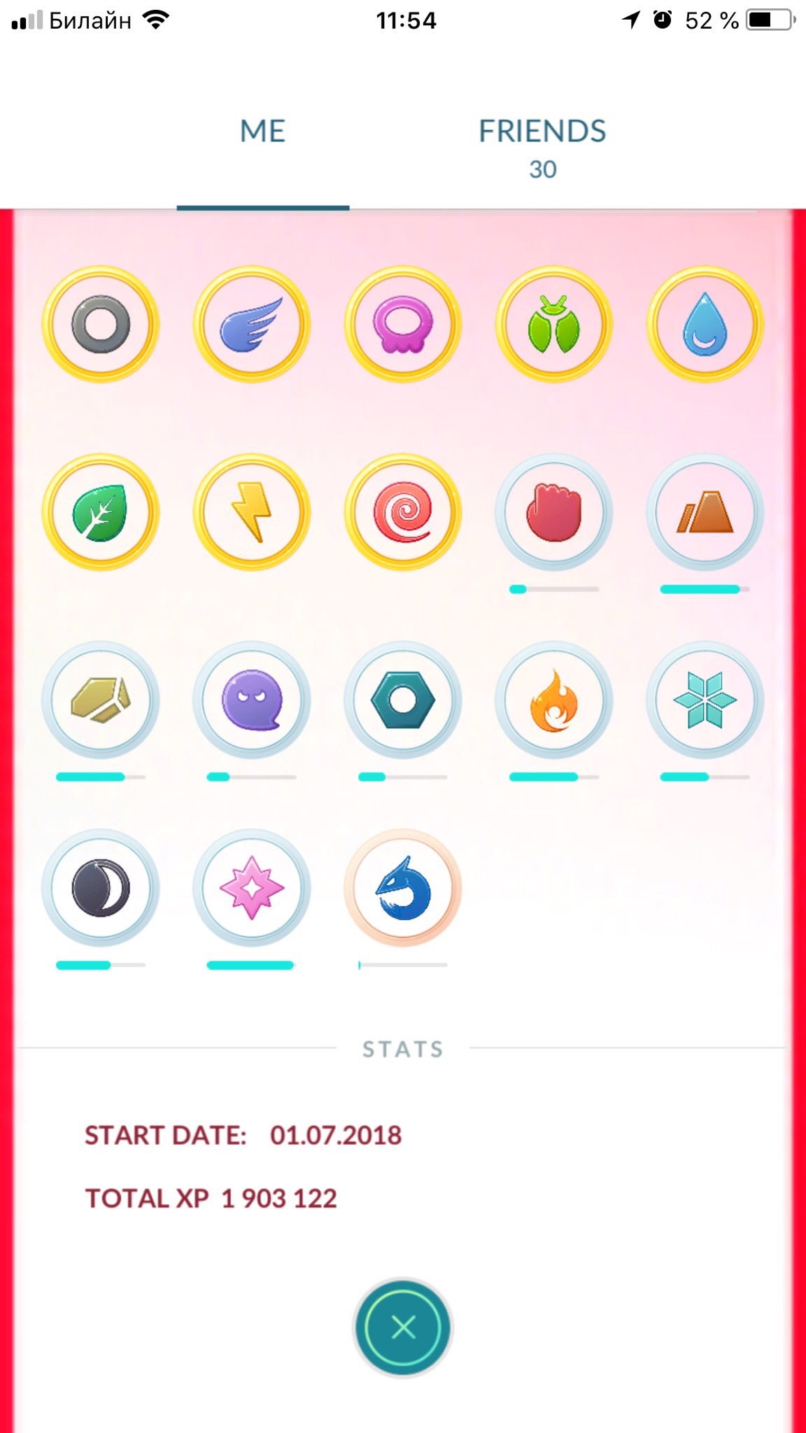 У человека который пару раз в неделю обходит по час-три весь район свой чуть лучше, у него 200 покеболов 150 грейтов и 50-100 ультра.