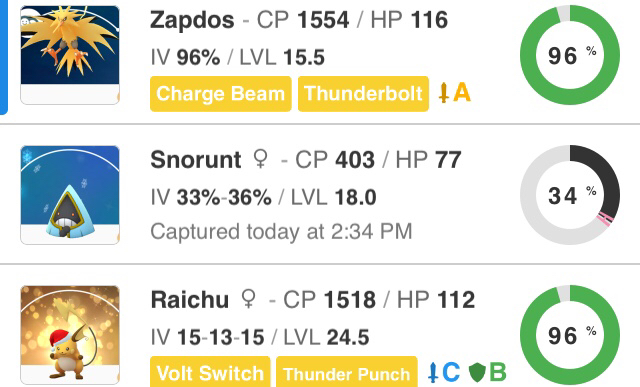 И вновь на связи нюфажина. На данный момент взят 16 уровень и очень сильно хочется повозиться с усилением или эволюцией покемонов. Из интересных сейчас есть: Murkrow 86.7 Eevee 92.2 Treecko 87.8 Sentret 84.4 Ekans 88.9 Persian 82.2 Weedle 86.7 Zigzagoo 92.2 Bellspout 93.3 И внезапный Hounddour 100 Все это в avg % IV. Суть такова, есть ли сейчас смысл начинать хоть кого-то из них поднимать по ср или даже эволюционировать?