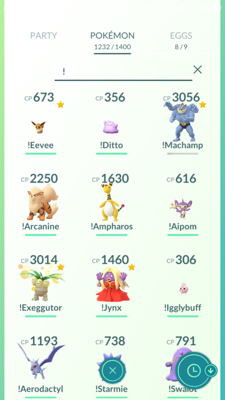 >>70581 > Может ещё начну утренние пробежки, тогда точно буду каждый день ходить к покестопам и новые найду. Скорость бега не засчитывается для высиживания покемонов. > Один вопрос, донат сильно ебет? Вообще ничего не донатил. > А то тут ограничение на покемонов я уже увидел, 300 штук и за ещё 50 плати рубли. Не рубли, а монетки. Монетки тебе дают когда из гима твоего покемона выгоняют. > Какие советы дадите? От лэвэла зависит.