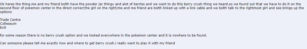 >>70521 Хз, тоже с женой менялся несколько раз, проблем не было. Раз в день ограничение, дружба максимальная. Обычно выбрать нельзя, если покемон не фулл хп или его уже трейдили, а так же у вас у обоих должно хватать пыли на трейд