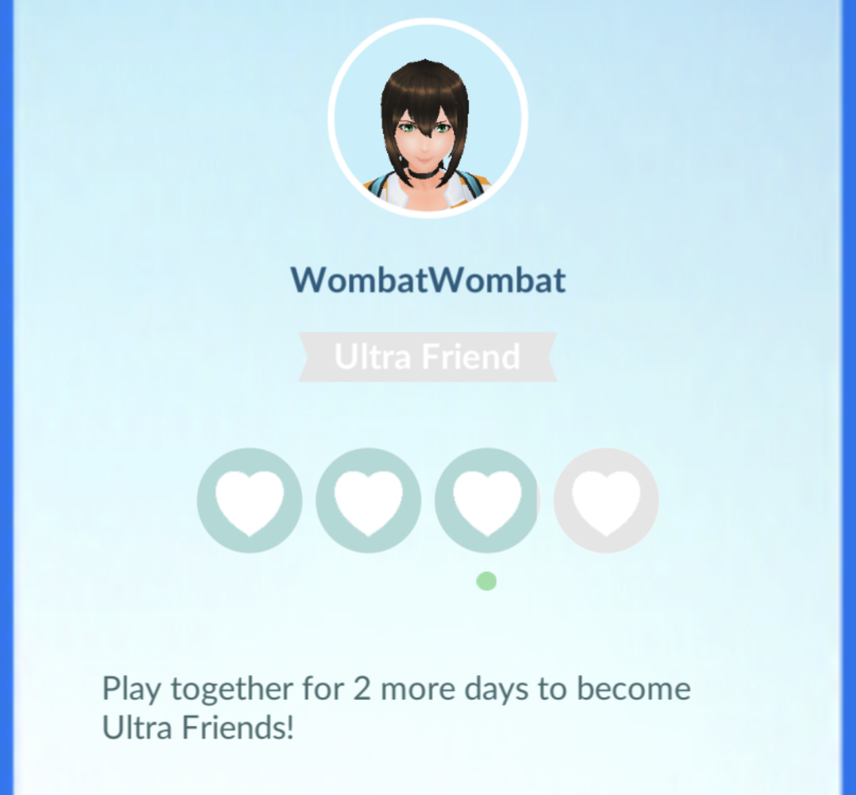 >>73265 Когда заходишь в список френдов, там вокруг аватарок голубой ореол. Если его нет, значит дружба еще не апнулась, тогда при любом действии (открытие подарка другом или тобой, совместный баттл, рейд или обмен поками) количество дней уменьшится. Если кружок уже есть, то нихуя не произойдет.