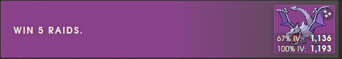 >>72044 Есть способ проще. Ходишь по городу и крутишь покестопы пока не найдешь квест "Win 5 raids". Делаешь 5 рейдов единичек-двоек. Получаешь аэродактиля за квест.