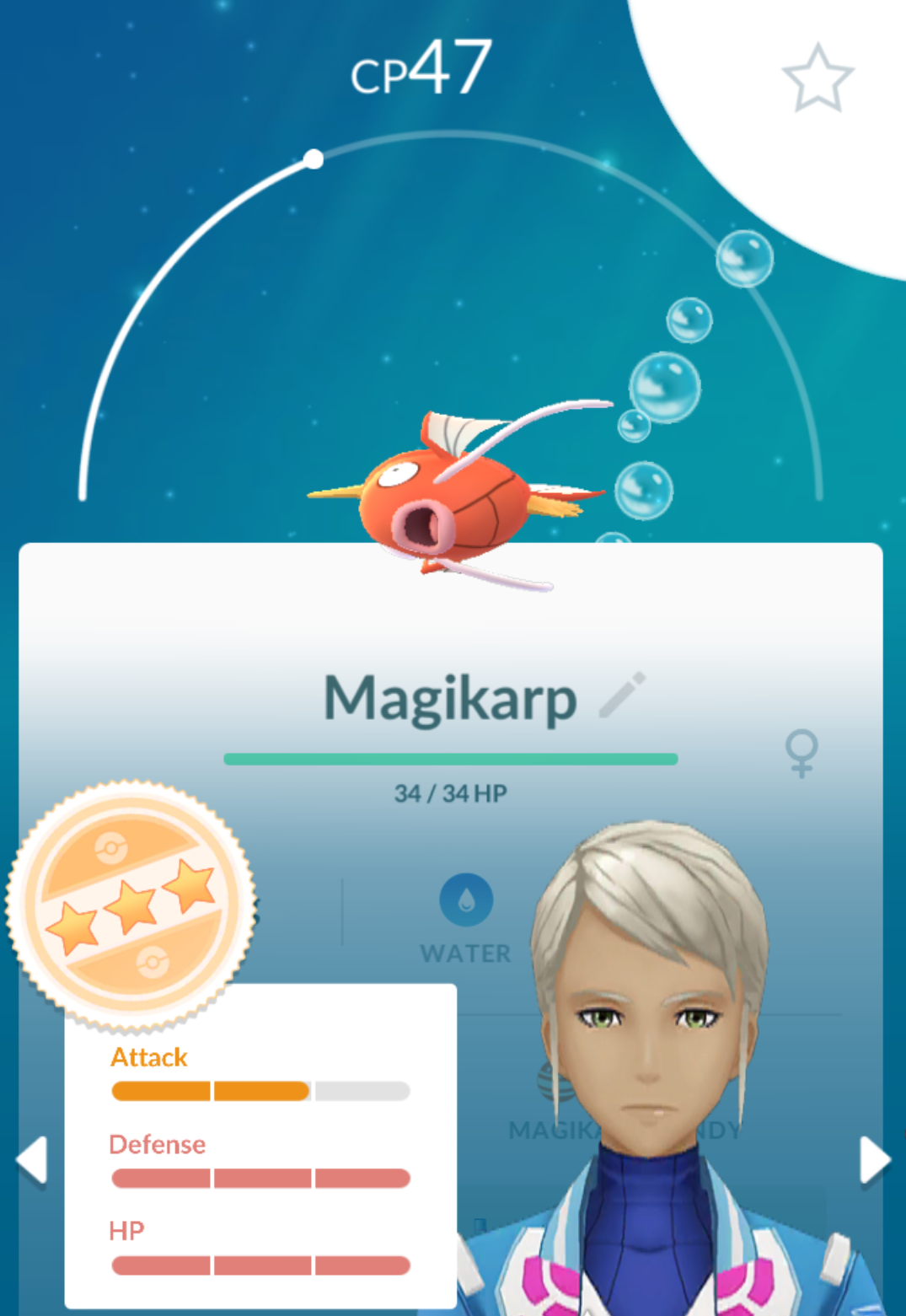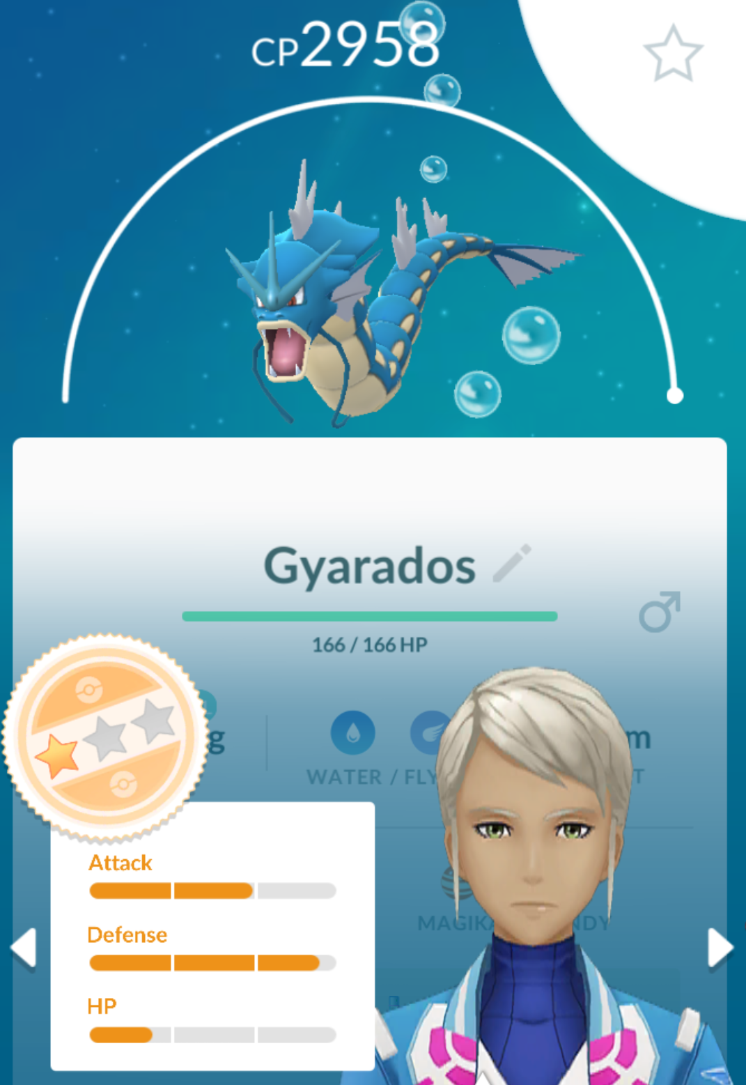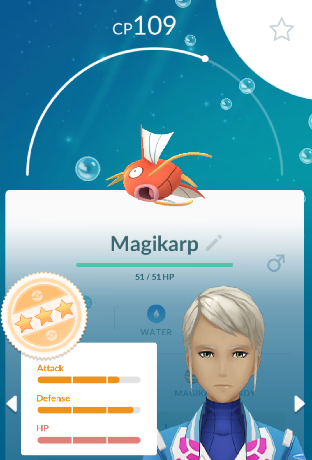 >>71847 Нажми кнопку appraise в кружке в правом нижнем углу при просмотре покемона. Появятся его статы и кружок со звездочками. Zero Stars: 50% or below One Star: Between 51.1% and 64.4% Two Stars: Between 66.7% and 80% Three Stars (orange): Between 82.2% 98% Three Stars (pink): 100% perfect IV