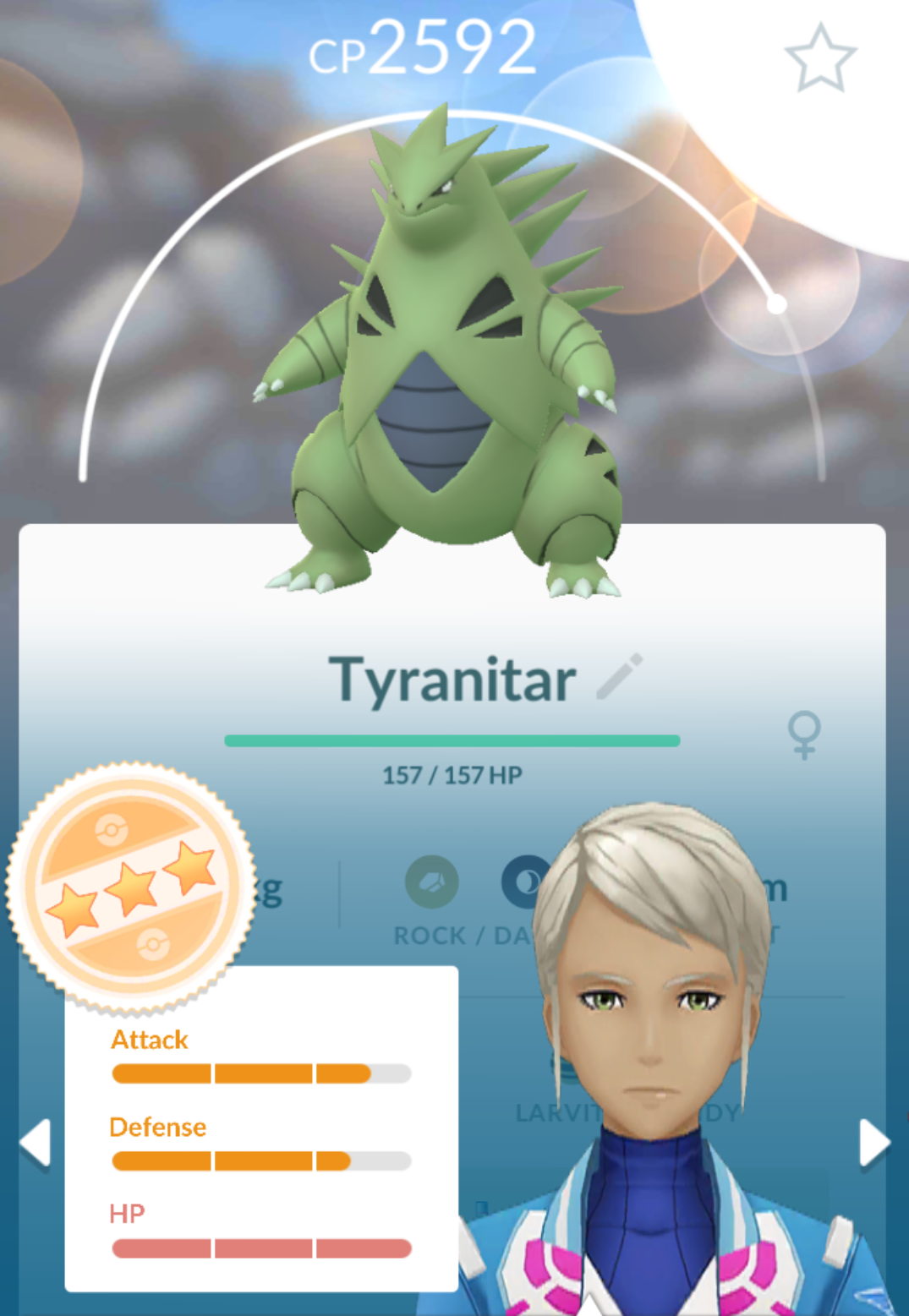 О, победил. использовал гьярадоса против мяута, затем его же атаку на первый щит снорлакса, затем своего снорлакса примерно до половины хп дал побить, заодно сняв второй щит и затем сменил на вивайла. Аккурат к смерти вражеского снорлакса заполнилась шкала скила аваланч и торртере буквально почти все хп снёс. В запасе осталось два пока, один почти мертвец, второй с половиной здоровья. Смотрел перед этим ютуб, там вообще у всех тиранитар появляется.
