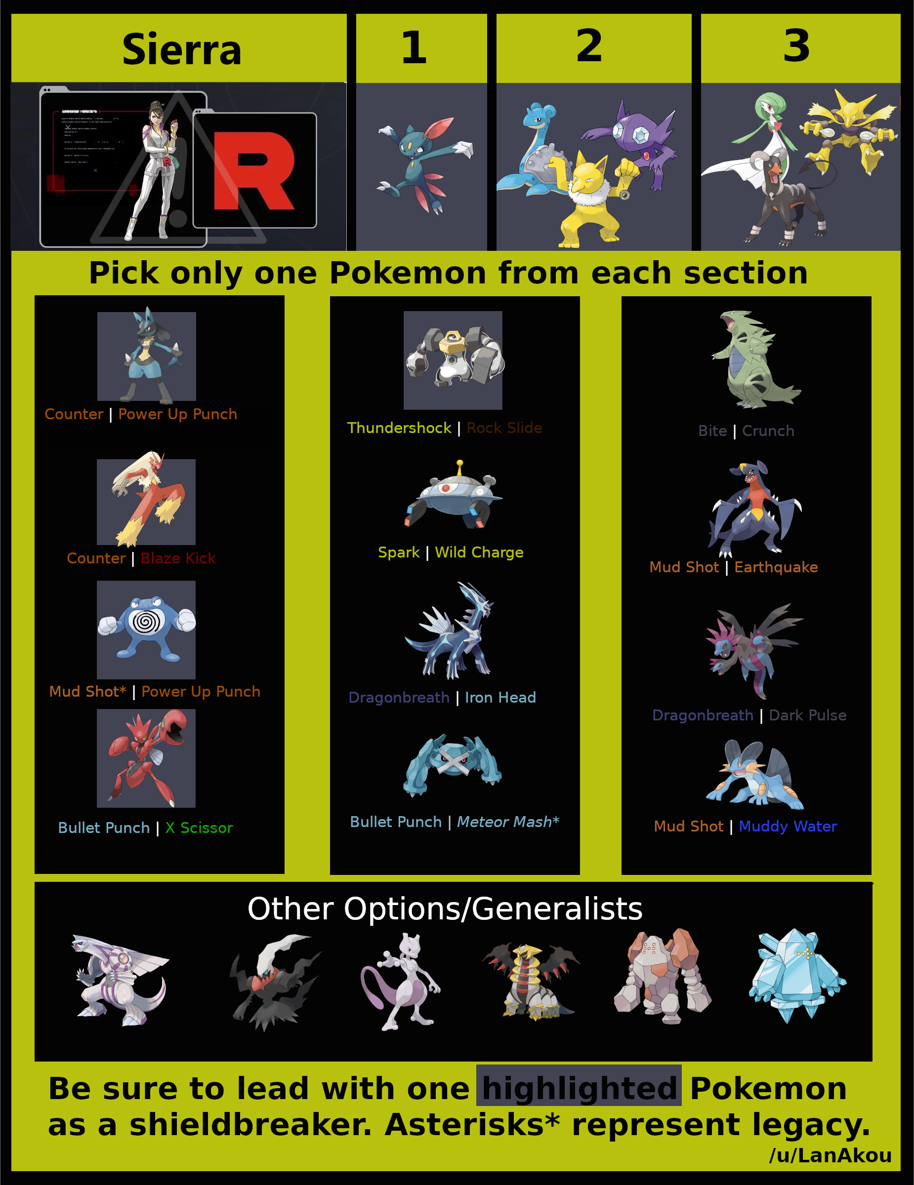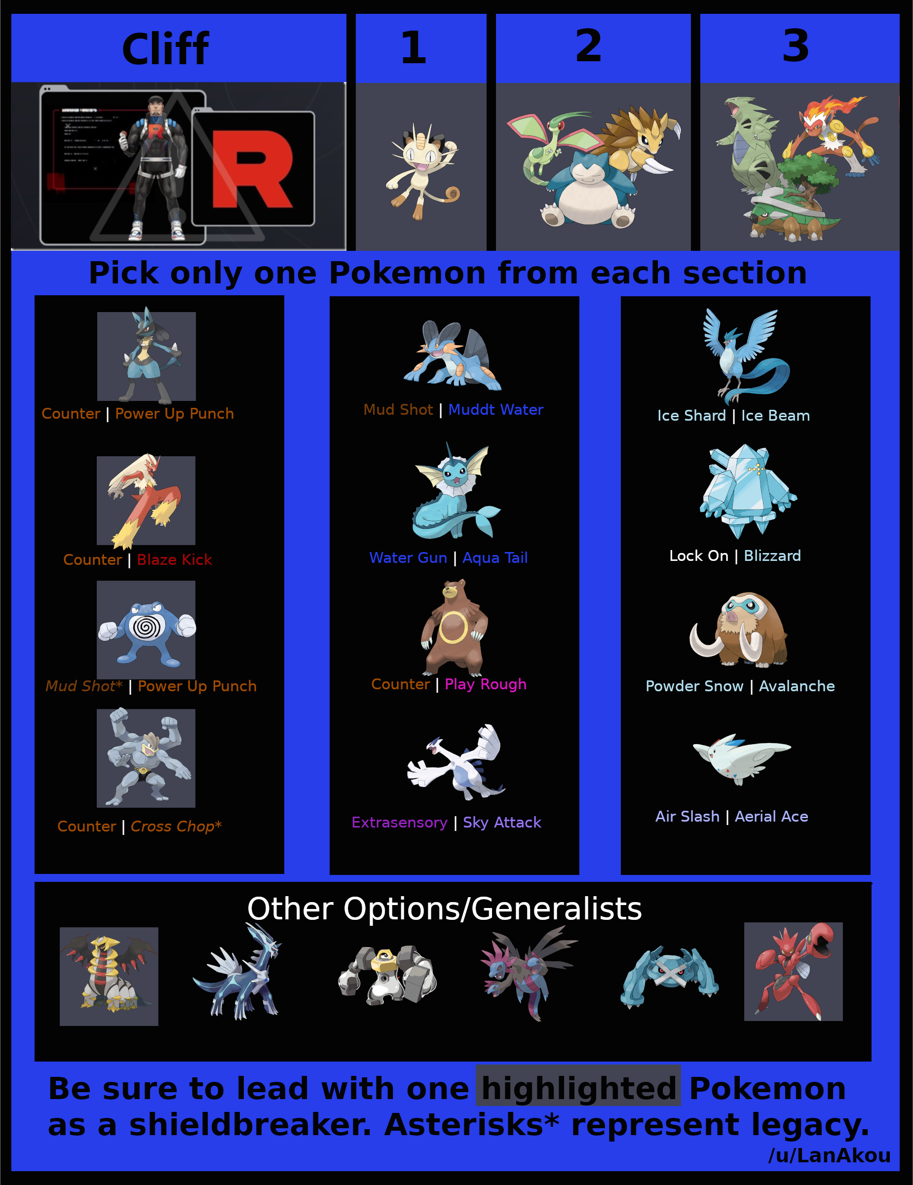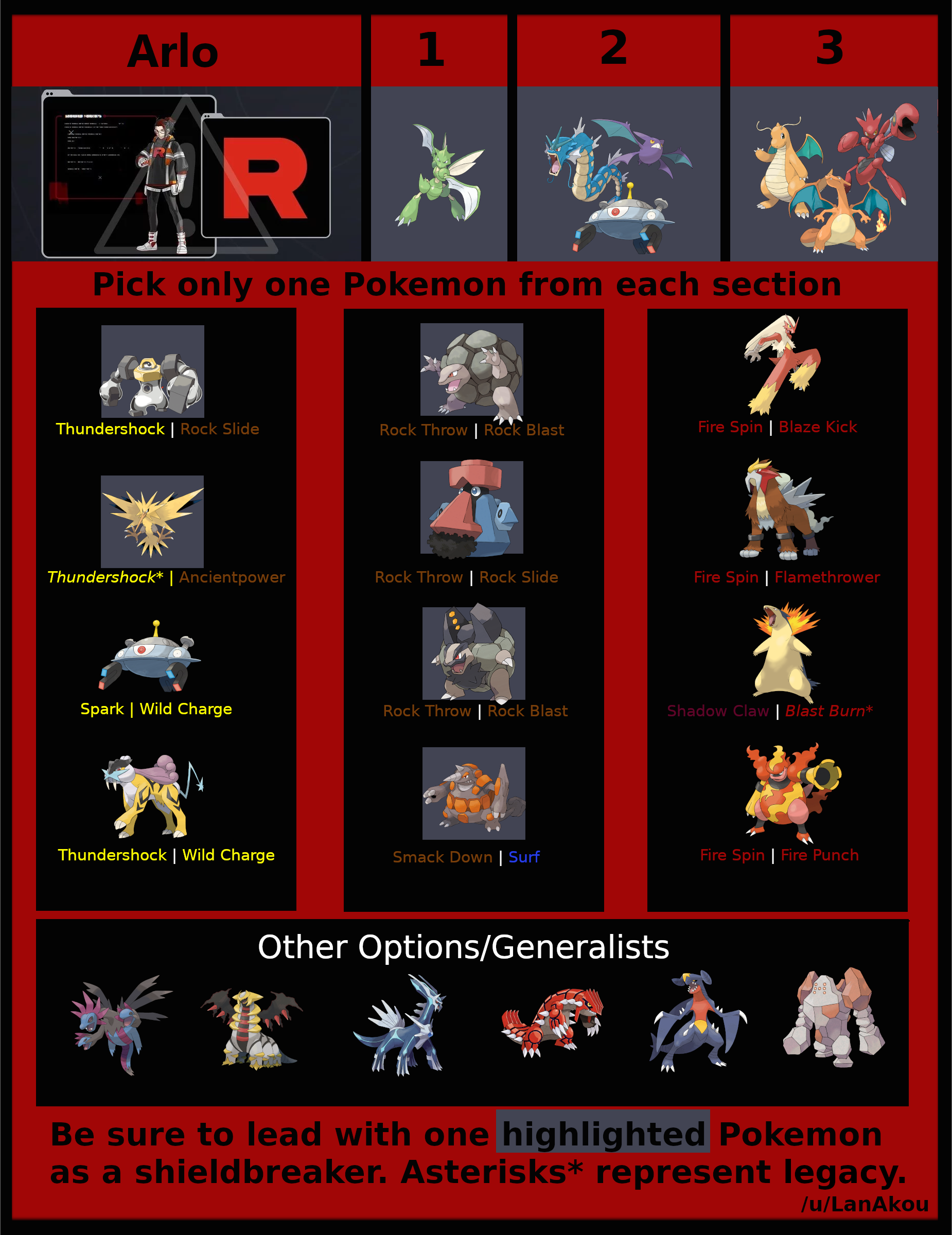 >>72309 Ты вообще понимаешь, что даже у того же Арло разный набор покемонов может быть от встречи к встрече? И эта его комбинация далеко не универсальна.