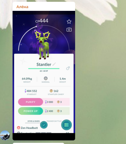 >>72814 Ну допустим я под качаю его, кого еще взять? Пилю прохладную. Вышел я сейчас на улицу пропердеться ну и за одно 3 км находить для пвп, очень странно засчитывается расстояние, кусками какими то, еще и что-то интересное произошло в конце (первый пик). Хожу я значит ловлю мэджикарпов и тут команда R и первый пок Хитмончан, бляя думаю ща всех разьебу в пвп то. В итоге он выпал 860, очищаю и сука 1584. Я конечно расстроился, но чуть дальше игра преподнесла мне гиарадоса 2600, да вы скажите это полное говно, но на моем 30 лвле для меня это максимальный цп который я видел (плюс он даже не прокачал до конца). Ну и ещё одна команда R дала мне ебучего оленя. Думаю нет смысла его очищать. Такие дела, сейчас поем и пойду в пвп