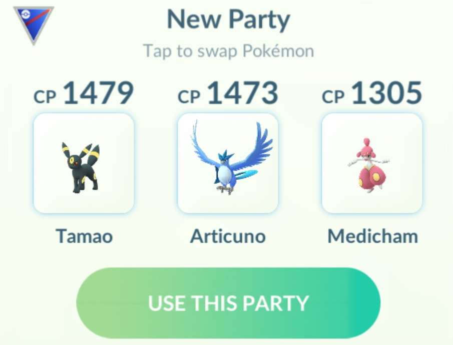 Тем временем пока что винстрик с пикрил пати. Но меня кидало в основном на каких-то даунов, у которых максимум 1-2 леги, несколько раз даже не доходило до медичама - они отваливались уже от артикуно. Умбр с фоул плеем сносит щиты как нехуй, потому что мув настакивается за 4 автухи, при этом сам он не сильно дамажится, да и файтинг/баг/фейри редко ставят в первый слот. Была одна клефабел, но с нормал фаст атаками. Попробовал в тренировке поставить виглитуфа в роли танка, но что-то он так себе(хуёвые мувы, феинт и хипер бим). Сколько боёв вообще в день можно провести, если по 3км ходить?
