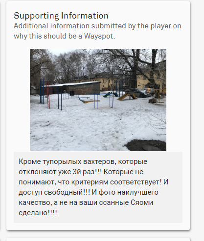 >>73192 Поясняю анонам как это делается. Изначально, сабмитить можно сколько угодно много PoI, но в покемонах появится в виде стопа только один PoI, на s2 ячейчку 17 уровня. Чтобы запихать в ячейку больше необходимо: -Подать заявку на добавление PoI в заведомо ложном месте в свободной ячейке -Дождаться подтверждения заявки и появления стопа в игре -Отправить заявку о том, что покестоп находится в неправильном месте с пруфами -Любоваться своей хуйнёй до тех пор, пока не накидают репортов