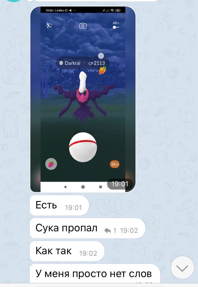 В локальном рейд-чатике девушка похвасталась скриншотом с шайни даркраем, которого била по удаленке, и которого после этого намеревалась поймать (там шанс поимки вроде 100% на шайников). После чего ее телефон глюканул и сбросил игру. У нее припекало так, что даже у меня телефон немножко нагрелся.