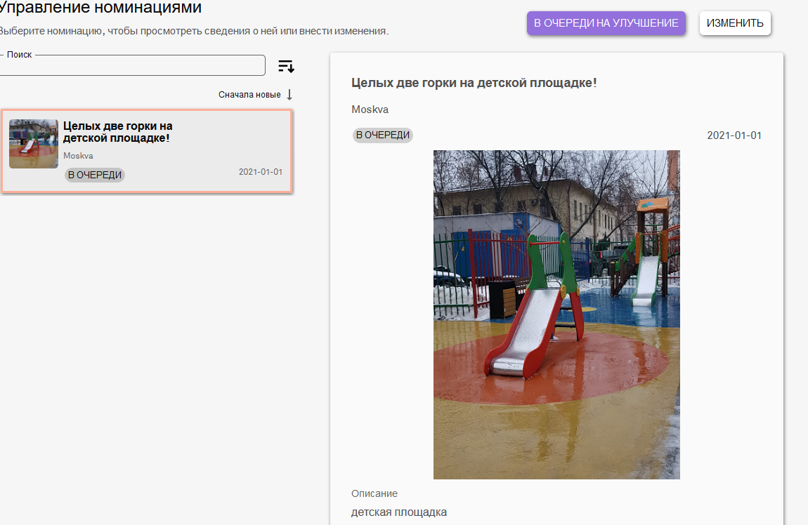 >>74357 И боже, не употребляй в названии слова "Детская площадка", это очень банально. Назови, не знаю, "Горка восходящего солнца", вон там круг внизу. Или "Зеленорогий монстрик". Включи фантазию.