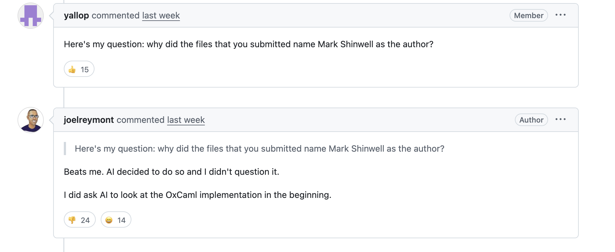 Но с сутью проблемы согласен. И раньше была история, что многим хотелось поучаствовать в проектах, чтобы приобщиться, вкатиться и всё прочее, и делали какие-то бессмысленные пулрексести, потому что чтобы реально полезное что-то сделать, надо высокую квалификацию иметь. Я сейчас так тем более, можно просто в IDE ткнуть на рандомный участок кода, сказать ИИ "improve this code", и потом не глядя отправить в мерж реквест.