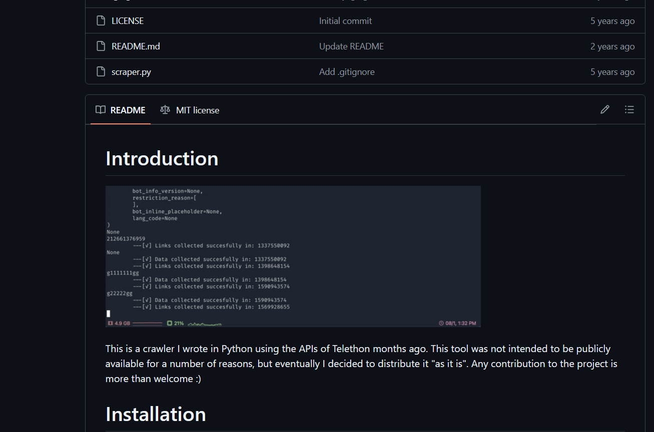 Всем прив, у меня обстоит вопрос о создании юзербота, который будет получать входные чаты, искать там ссылки на другие чаты, если ссылка на публичный чат, то кравлер просто использует предпросмотр и в сам чат не входит, в противном случае, бот пытается войти в чат и в случае успеха также извлекает из него ссылки и выходит, приступая к дальнейшему распространению. Вопрос обстоит в том, существуют ли уже нормальные готовые решения, или же придется вручную писать. Сразу стоит задать вопрос насчет безопасности для аккаунта, какую стоит делать задержку между запросами и стоит ли делать её рандомной, а также периодически делать большой период задержки, который имитирует будто пользователь закрыл приложение. Вопрос о хранении полученных данных, в принципе, не имеет значения, так как хранить можно хоть в SQL, хоть в текстовом файле. вопрос скорости также не обстоит остро, так как я собираюсь запускать бота на локальном сервере, который постоянно подключен к интернету, что можно дополнительно использовать для безопасности аккаунта (задержки между реквестами можно делать больше) Заранее спс за обсуждение\советы