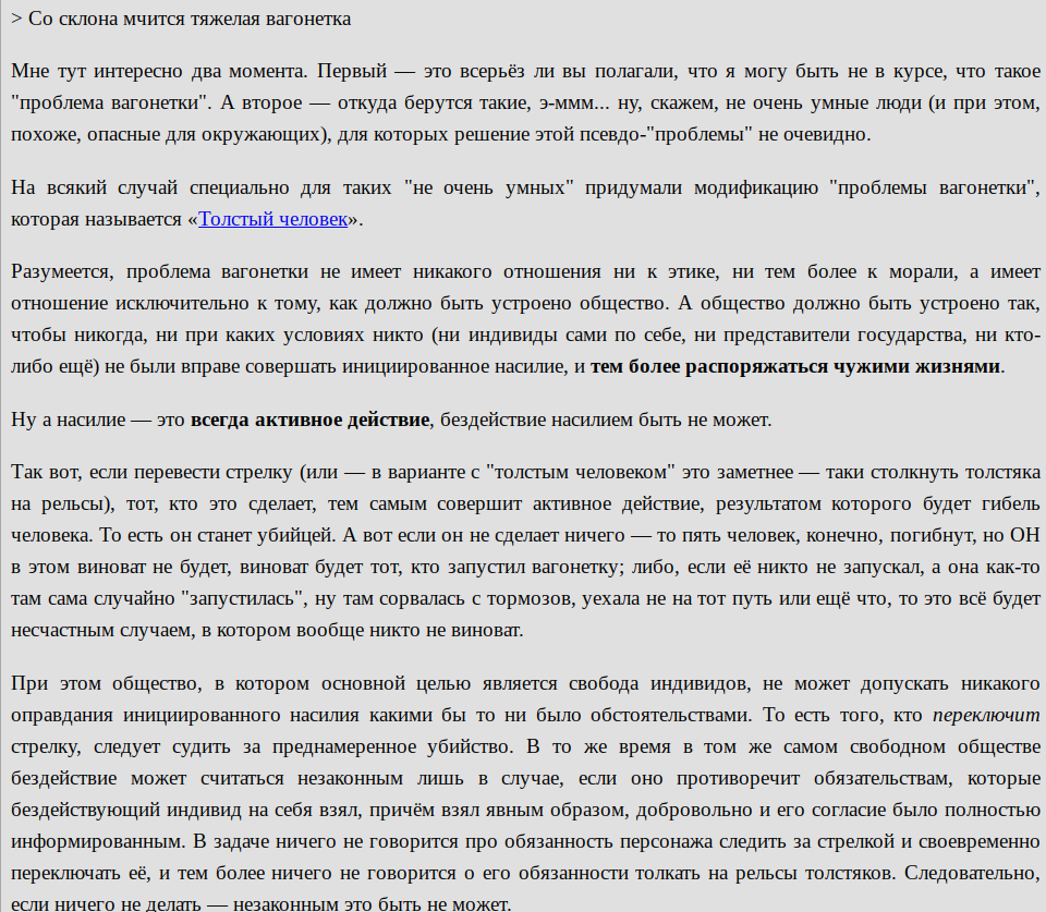 Кстати, на этом моменте, либертарианцы палятся как обыкновенные куколды готовые подставить жопу государству в первый же момент. Право повернуть ручку - "ни за что!!! ряяя !! активное насилие"!!!. Терпеть анальные меры от государства - "так и надо!! зато мы честные!! рано или поздно мы победим!!".