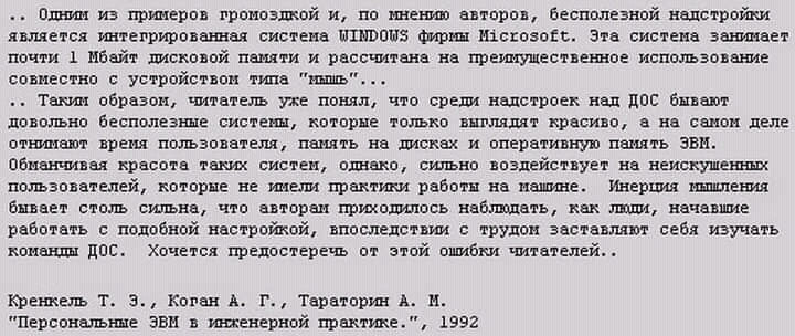 Да и при чём тут текстовый интерфейс? думаешь он больше не используется нигде? ооо, ошибаешься. Наверное, командная строка - единственное что из книги столярова может хоть как-то немного на работе пригодится. (ну протоколы ещё, частично)