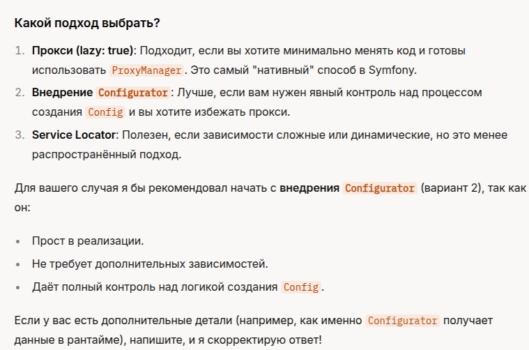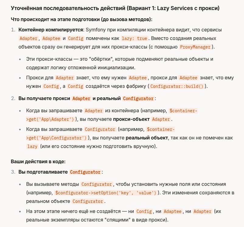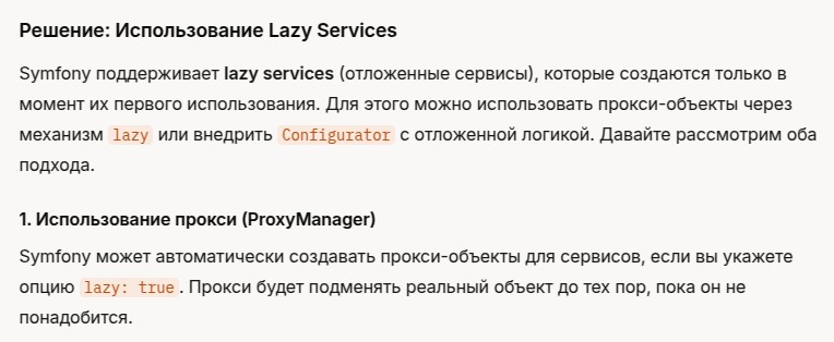 Отличный вопрос про отложенное создание объектов (lazy initialization) в контексте контейнера зависимостей Symfony! Давайте разберёмся, как это можно реализовать.
