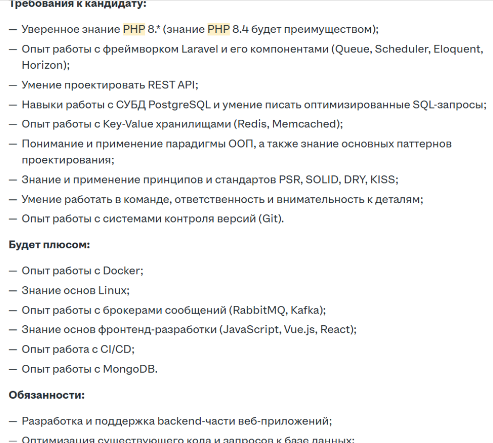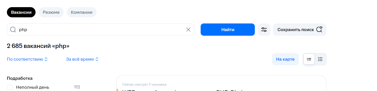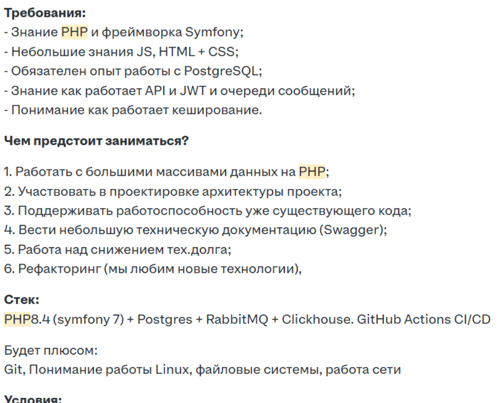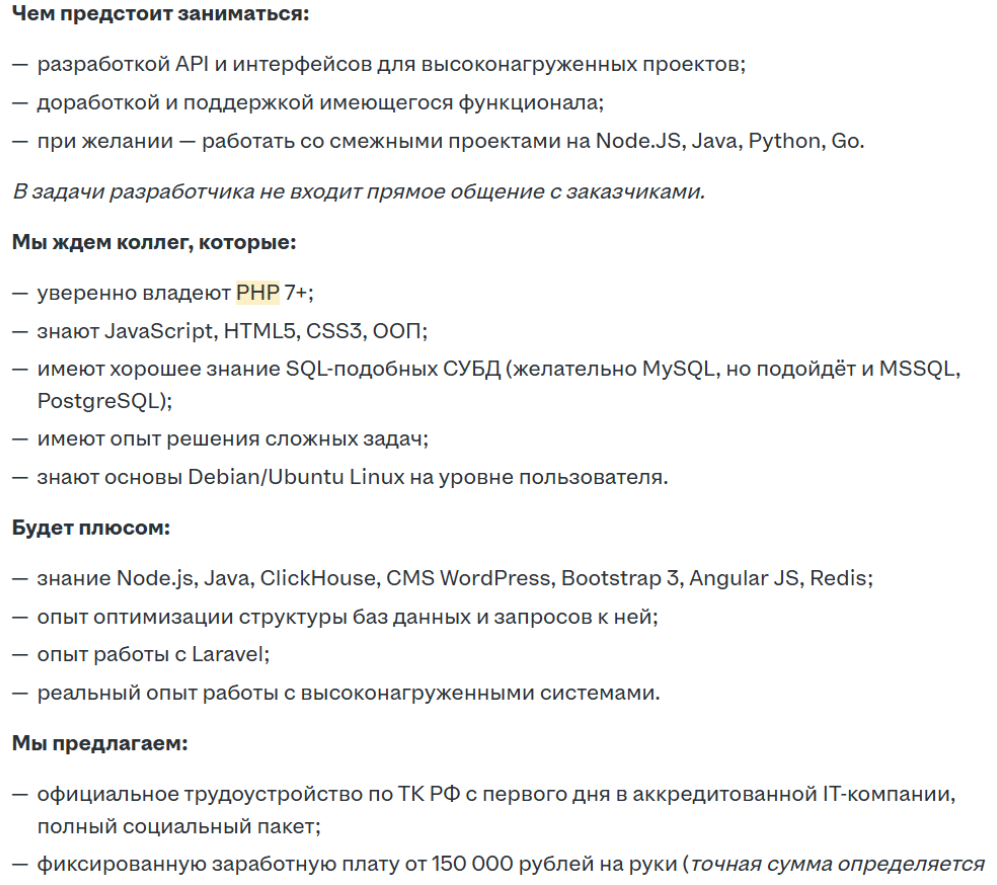 Вот примерные вакаснии пхп 80-150. Это адекватные требования?