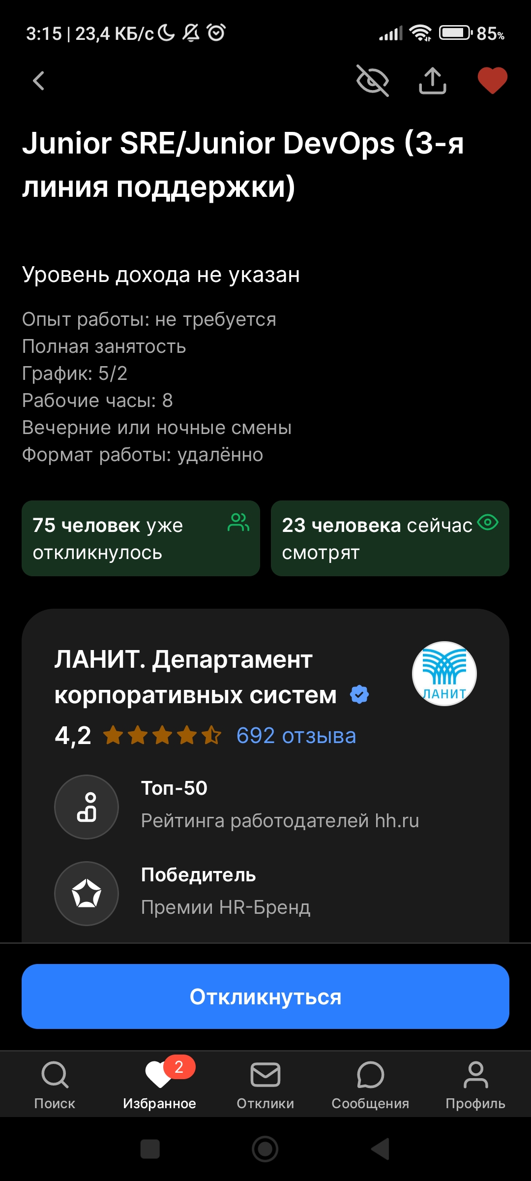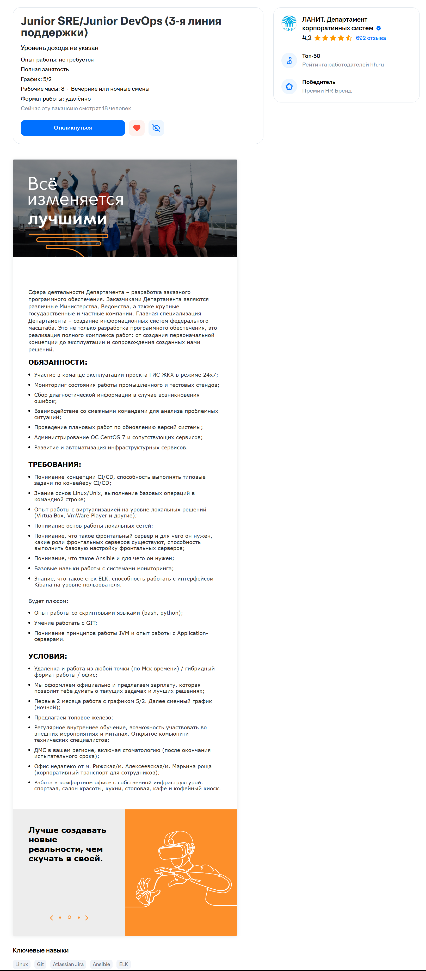 >>3500094 > кто-нибудь перекатывался из саппорта? Я типа как в процессе. Саппорт 3 линии. Вообще в компании вырос с 1.5 линии по сути. Полгода назад был сбор команды где спрашивали у кого какие цели, может обучение кому подкинуть. Я заикнулся про девопса, а надо мной посмеялись "лол, девопс из саппорта))) придумай чо нить другое)))" Пару месяцев назад увидел у нас же вакансию на девопса. Говорю начальнику, а чего бы мне не попробовать раз место есть. Через пару дней мне говорит, что вакансию сняли, начальство передумало нанимать вообще, но мне решили выделить в менторы одного девопса. Мол пока поднатаскаешься, а как место будет то повысим если справишься.