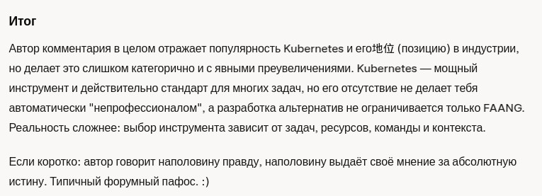 >>3437773 >доверят свои серваки Это устаревшее мышление. Сейчас мало кто использует прямо голый сервер. Везде стоят saas'ы. Если ты хочешь мониторинг - пожалуйста есть datadog, dynatrace. Хочешь базу данных? Есть planetscale, neon. Хочешь биг дату? Есть databricks, snowflake. Хочешь нейронки? Есть openrouter, together.ai. Хочешь event broker? Есть eventbridge, sns, и прочее. Это всё скрыто за слоями абстракций. У тебя есть апи ключ, есть sdk и доступ к няшной админке. Там нет классического "пердолинга в консоли", как и нет самой консоли. Там обычные кнопочки-хуёпочки, ползунки и прочие визуальные крутилки.