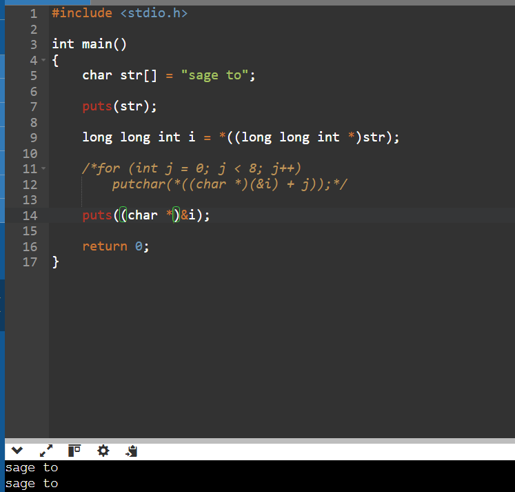 Я еще слишком жирно перехвалил Си сказав что он может высирать буквы в консоль, на самом деле не может.