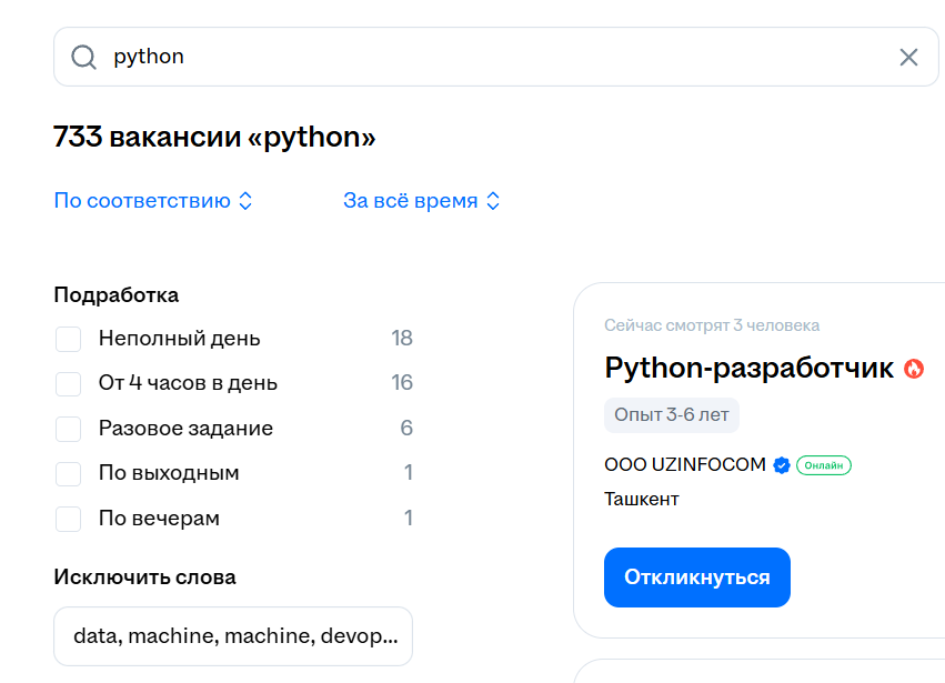 Количество вакансий с аналогичными фильтрами: 1180. 12 человек на место. Чувствуешь разницу?