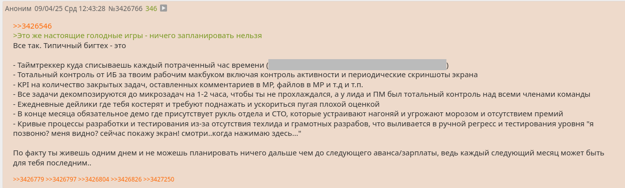 >И скорее всего те топ менеджеры, которые придумали как в 2025 году эффективно выжимать все соки из своих рабов, в 2035 году уже будут где-то в другом месте работать А толку? Фарш обратно в мясорубку не прокрутишь. Если руководству (собственникам) это удобно, оно будет и 5, и 10 лет спустя.
