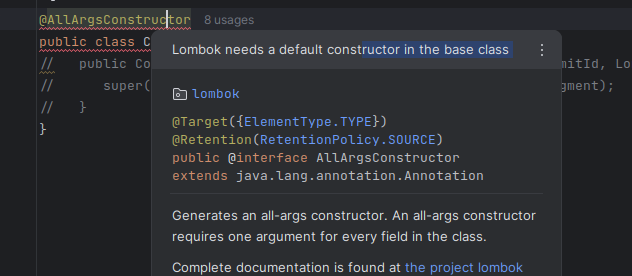 > Я хочу совместить две аннотации лобка в одну общую. Чтобы я не ставил @Getter @Setter, а просто @GetSet. Ну это в самом простом случае. Ишью с 15 года для этого - https://github.com/projectlombok/lombok/issues/557 Ну пиздец уписался бойлерплейта, лишнюю аннотацию повесил. Ещё претензии к лобку будут?
