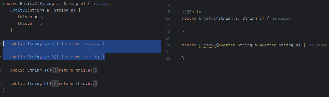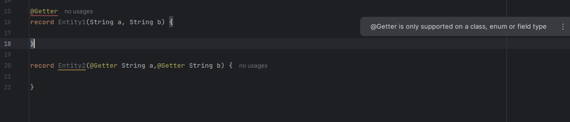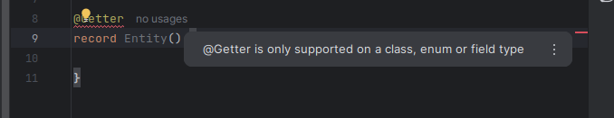> Всяко лучше выкидывания рекорда, для того чтобы удолетворить требования лобка. Ты в первую очередь пытаешься удовлетворять требования какой-то легасной хуйни которой ОБЯЗАТЕЛЬНО нужно иметь метод названный через get. У неповески геттера на рекорд есть причины — нахуй тебе геттеры в рекорде где они уже генерируются? Впрочем можешь попробовать скомпилировать, мб это вообще баг плагина для жидеи чисто.