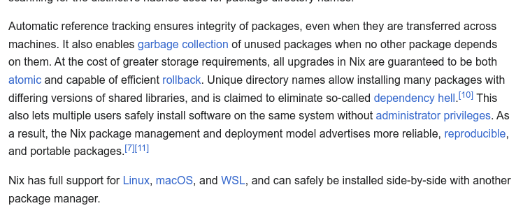 >>3463455 Контейнеризация - это про изоляцию, чтобы внесенные изменения не влияли на хост. Сначала это чрут, потом уже с развитием сигрупс стала возможна изоляция не просто фс, но целых процессов. Ну и еще раньше некоторые программы запускались as if root, типа ping ибо без рута ты не сможешь создать сокет что ли. Потом эту хуйню пофиксили создав что-то типа authority, которое ты можешь выдать процессу. Вот во всем этом НЕ прослеживается борьба с пакетными менеджерами. Если тебе не нужна изоляция, а нужна поддержка скажем нескольких версий пакетов, то существуют пакетные менеджеры, которые могут обеспечить тебе такую поддержку и без копирования всей ос.