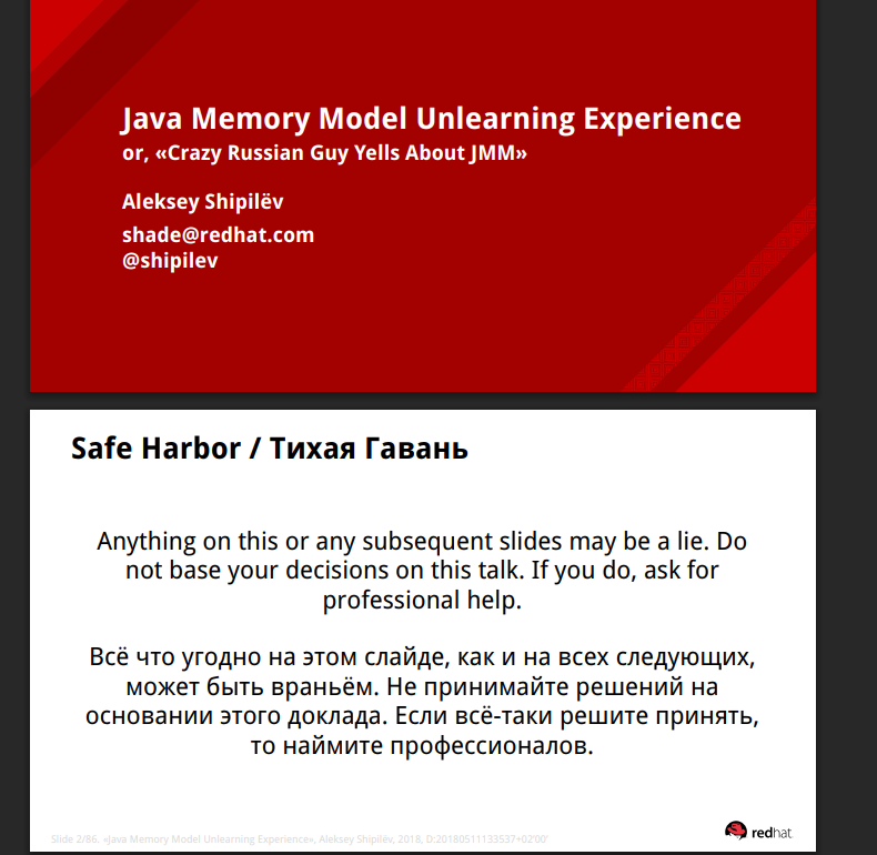 >>3469418 >Они так и пишут в дисклеймерах к своим виршам - "За что купили - за то и продаем. Мы лично ни за что ответственности не несем. Хотите гарантий - наймите нас специалиста в штат" Конечно же нет, чел ты никогда на конференциях не был? Литерали никогда такого нет. Там всегда байтовые заголовки, типа "Почему вы все еще используете монолиты?" или "Как мы переписали весь проект с монолита на микросервисы" или "Чам важна иммутабельность?". Пища для размышлений очень плохо заходит аудитории.