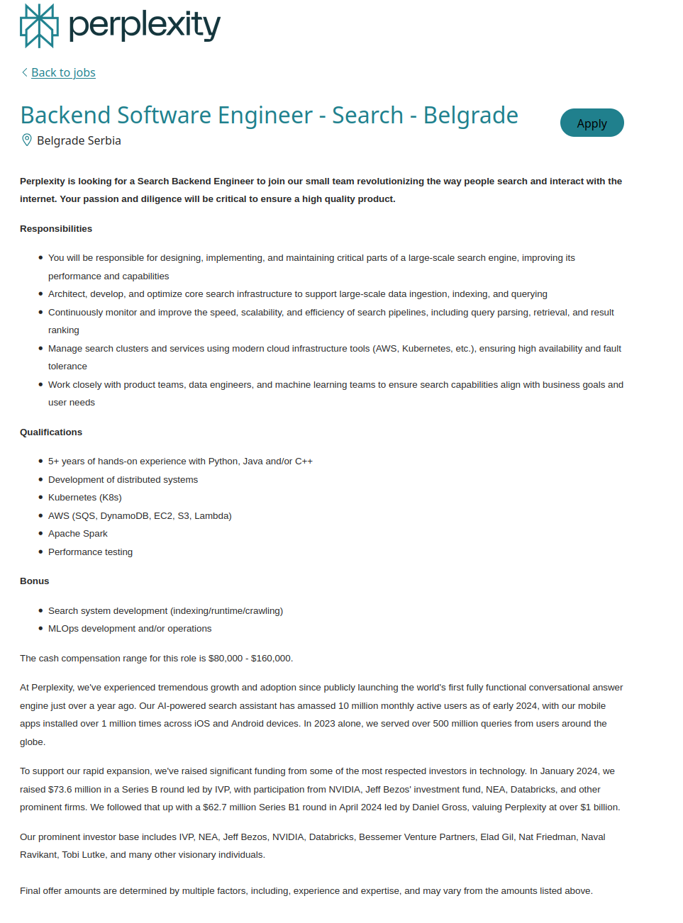 >>3469142 Там много поисковой инфры делать надо. PhD в области ML для этого иметь не нужно. Собственно перплексити свои модельки не разрабатывают, просто берут готовые и пукают в них запросами.