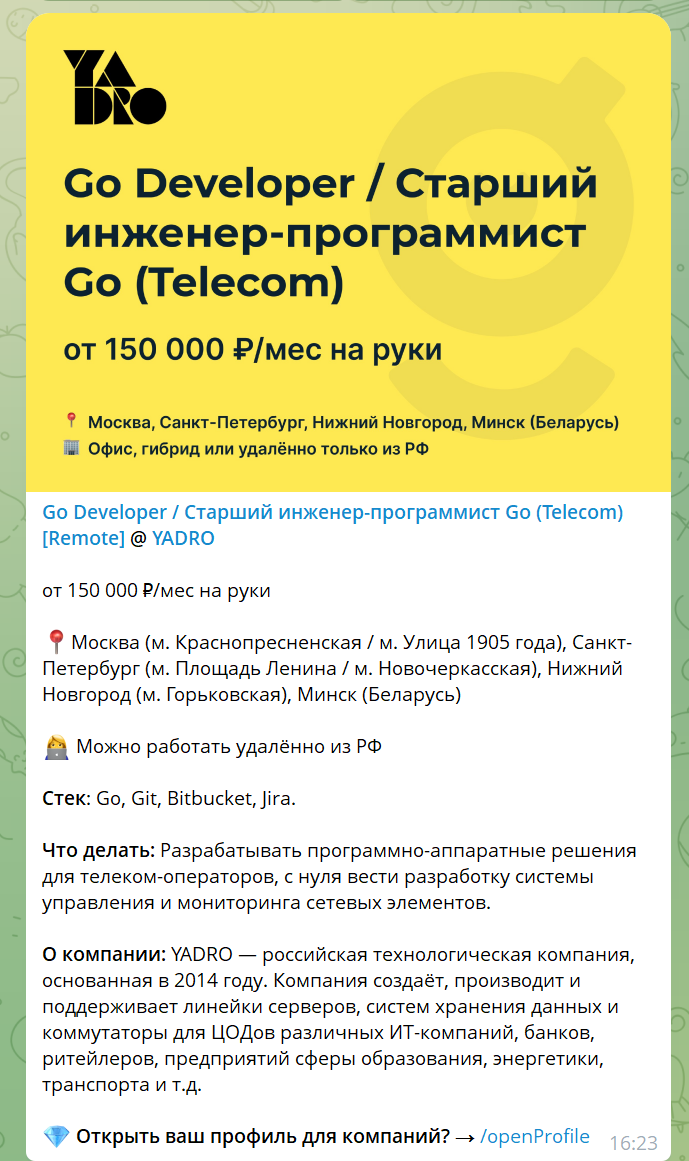 Другое дело, что если бы был выбор пилить крудики в Озон, то я бы ушел туда, но там найм много где свернули + Авито тоже свернуло найм сильно, офферы мне туда не дали. В итоге единственное место, куда взяли, это было Yadro, туда и пошел.