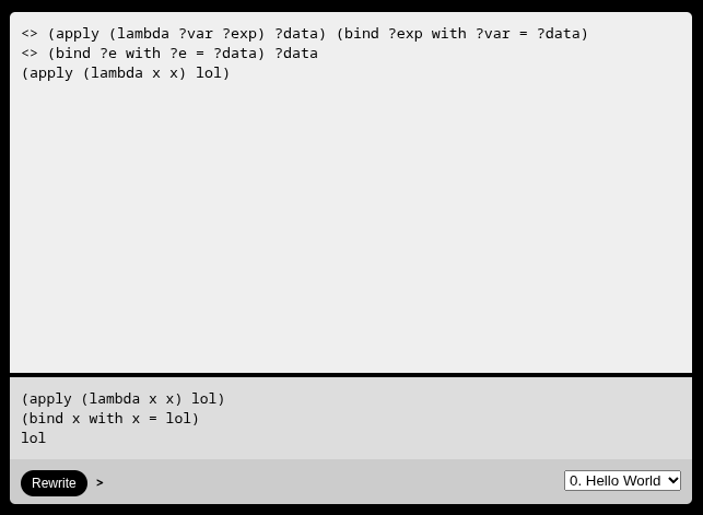 >>3497637 > Какого хуя мы мыслим архитектурами уровня Hello world? А нахуя мне писать тебе полное определение лямбда исчесления, арифметики Пеано в правилах=терминах перезаписи? Я просто показываю концепцию, как оно вообще работает.