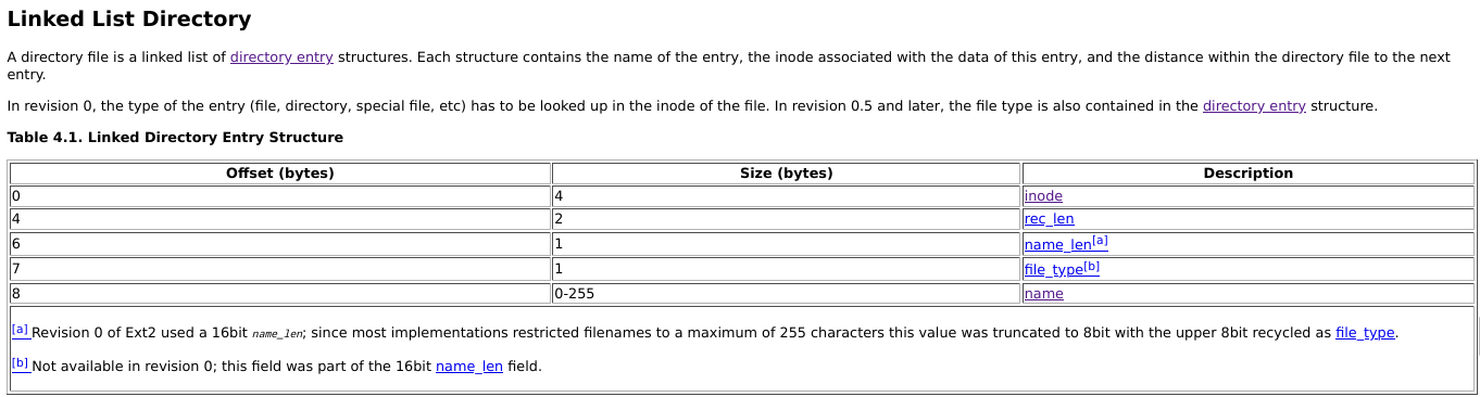 Как понять иерархическую организацию директорий, если в структуре директории есть только оффсет (до соседнего по текущей директории) файла, имя и айнод; а в айноде - лист блоков, где хранится файл, и другое, но ни намёка, как разные уровни директорий связаны друг с другом?