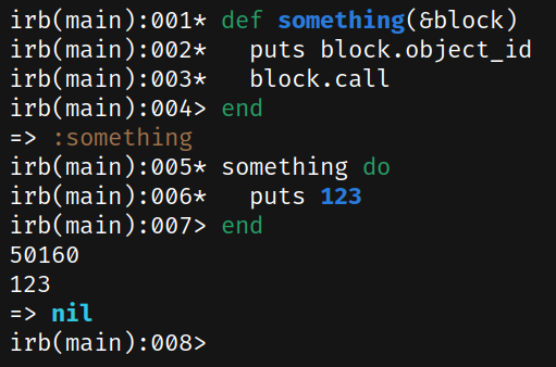 >>3366918 ЕМНИП, инлайн-блоки не создают объёкты на куче по дефолту (но я не ебу, как оно реально устроено), если их не записывать в переменную (как здесь, например, или через x = proc { }). Или что-то такое. Короче, они не всегда объекты на куче с точки зрения реализации, но всегда объекты когда это имеет значение.