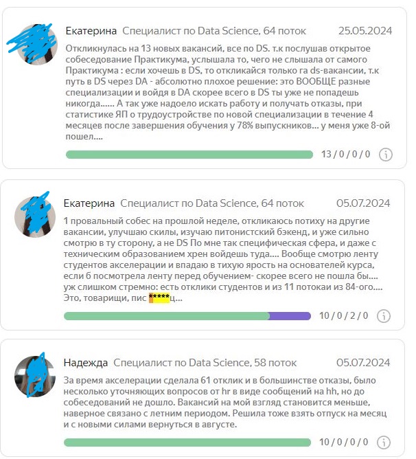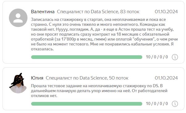 реальный отзыв записан прямо на странице практикума: «выпускников с своих курсов не берем» >>3320033 >Есть еще какая-нибудь платина? ну qa макаки, средний поиск работы сейчас 1-2 года; на yt девушка выкладывает видосы как она после курсов год ищет работу в data sc с профильным образованием…