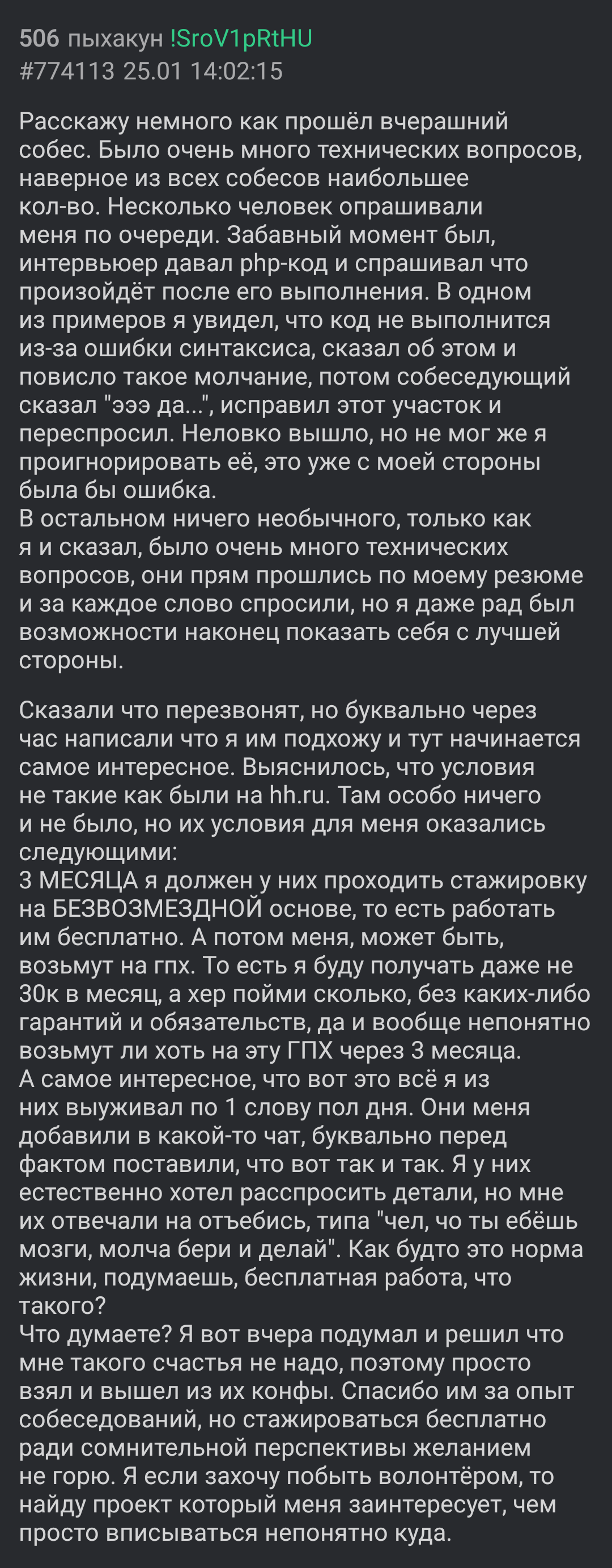 И главное нахуя это... Я бы понял если люди хотя бы на что-то претендовали, там на удаленку, на интересный проект, на хорошую зарплату, на веселый коллектив с печеньками уже просто хотя бы.
