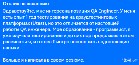 Итак, пока 90% вкатунов пробуют вкатиться в макакинг и конкурируют там с задротами-олимпиадниками, учат каждый день новые фреймворки и выгорают, мы спокойно (твердо и четко) конкурируем со вчерашними ручными тестировщиками, Наташками и Михалычами, которые в тестирование пришли с кассы.