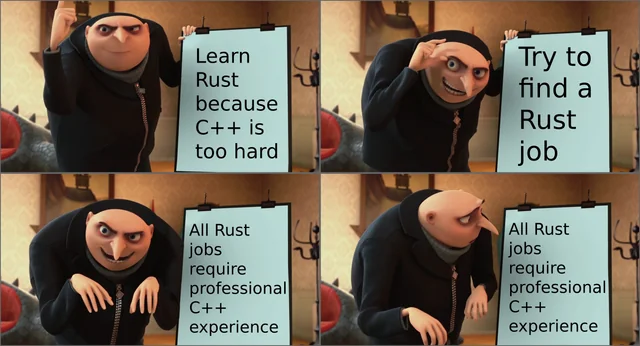 я сам работал C++ программистом. последняя работа в 2023 году - бросил, сам ушел. Раст одна из причин загубленности моей "карьеры". Когда я на него перешл в 2016 году для своих поделок. моя производительность просто выросла в полтора раза. синтаксис более проработан, он свежий, лаконичный и std мощнее. система макросов не вызывает боязнь за переносимость. сборка любого проекта это тупо две строчки в консоли набрать git clone и cargo build.