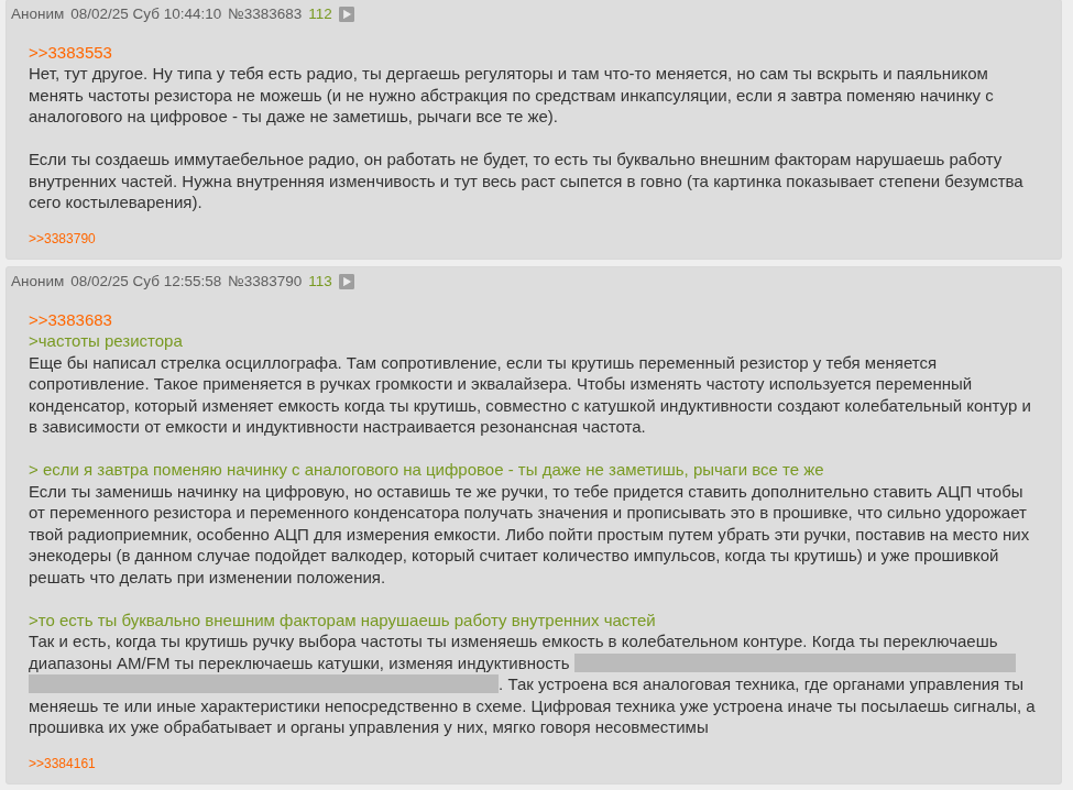 >>3564180 Давно не заходил в тред, а тут всё по старому. Опять этот шиз с радио лол. До этого хотел сделать из аналогового цифровое, оставив старые органы управления. Теперь и вовсе сопротивления перепаивать чтобы изменить частоту