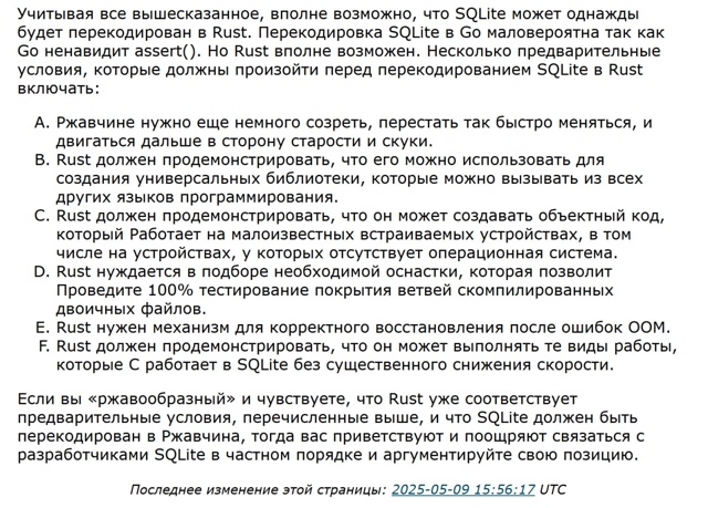 Ну што, ребят, торжество раста: https://www.opennet.ru/opennews/art.shtml?num=64282 Забавно, что я уже хуй знает сколько лет об этом пишу. Но, справедливости ради, точно такие же проблемы есть и у C++, так-то для большинства применений Rust и C++ почти равнозначны.