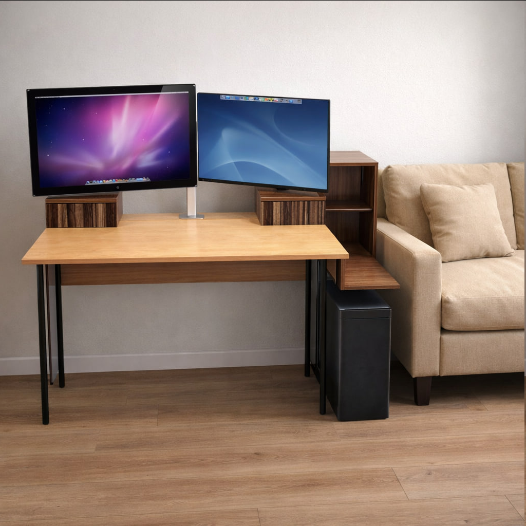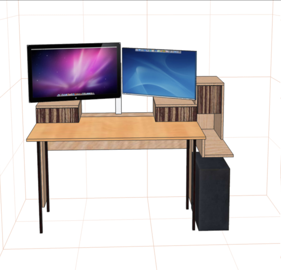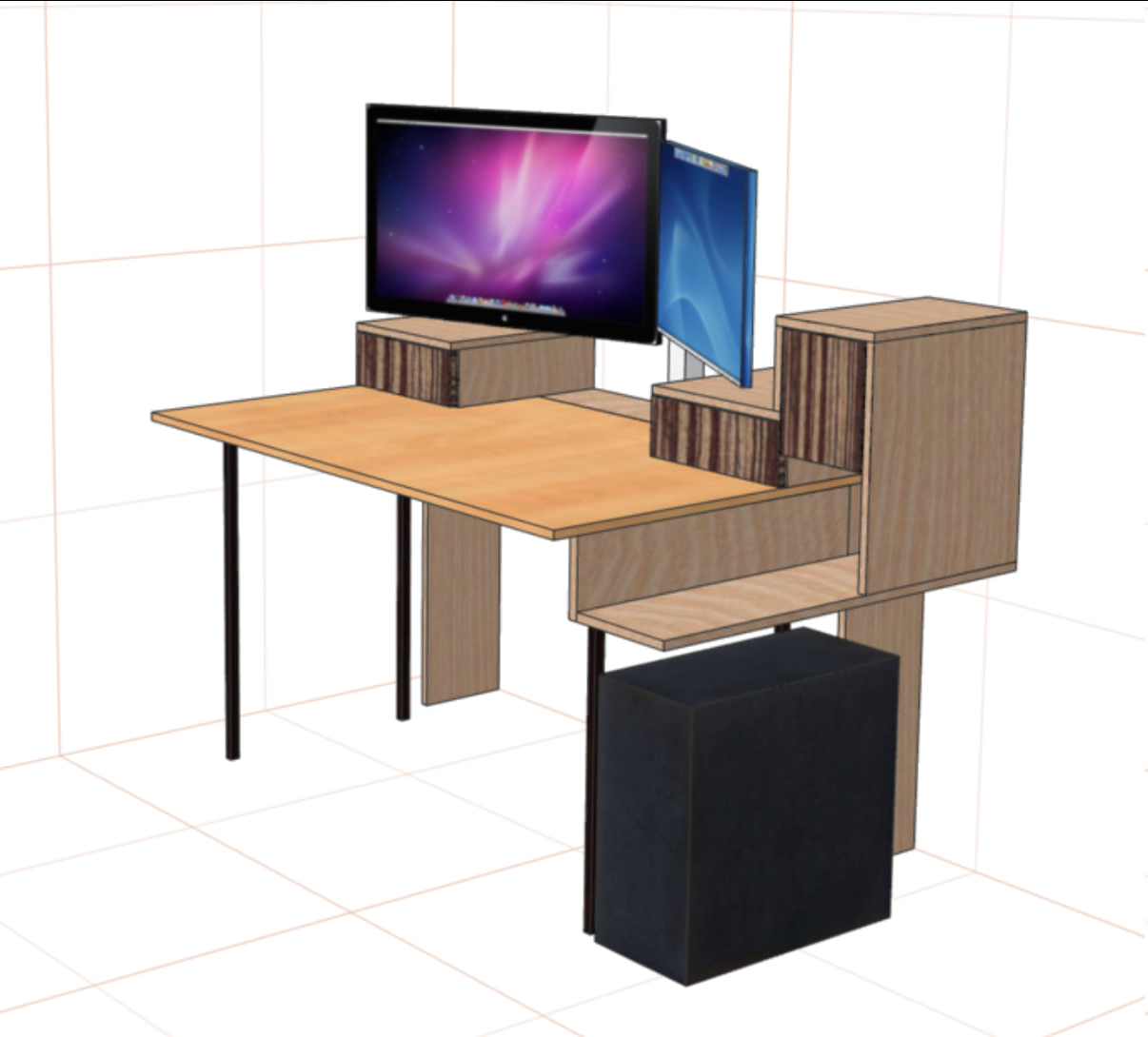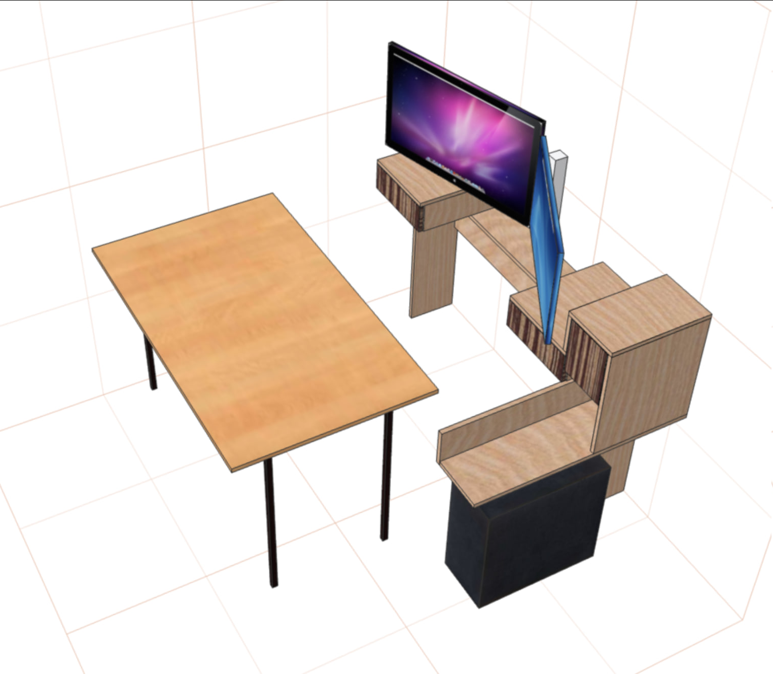 >>3627870 Начертил себе расширение (extension-метод) для стола (переехал к женщине, тут ничего моего нет) т.к. голый стол для меня оказался слишком неюзабелен и неудобен + глубины не хватает под моники 32 + 27, глаза начали разъезжаться. Начертил, и... Попросил чатГПТ визуализировать - он круто справился. Не на 100% - но в целом понятно что выйдет. Вот она, область применения нейросетей, быстрая визуализация, тупые вопросы. Но явно не погромирование жэс