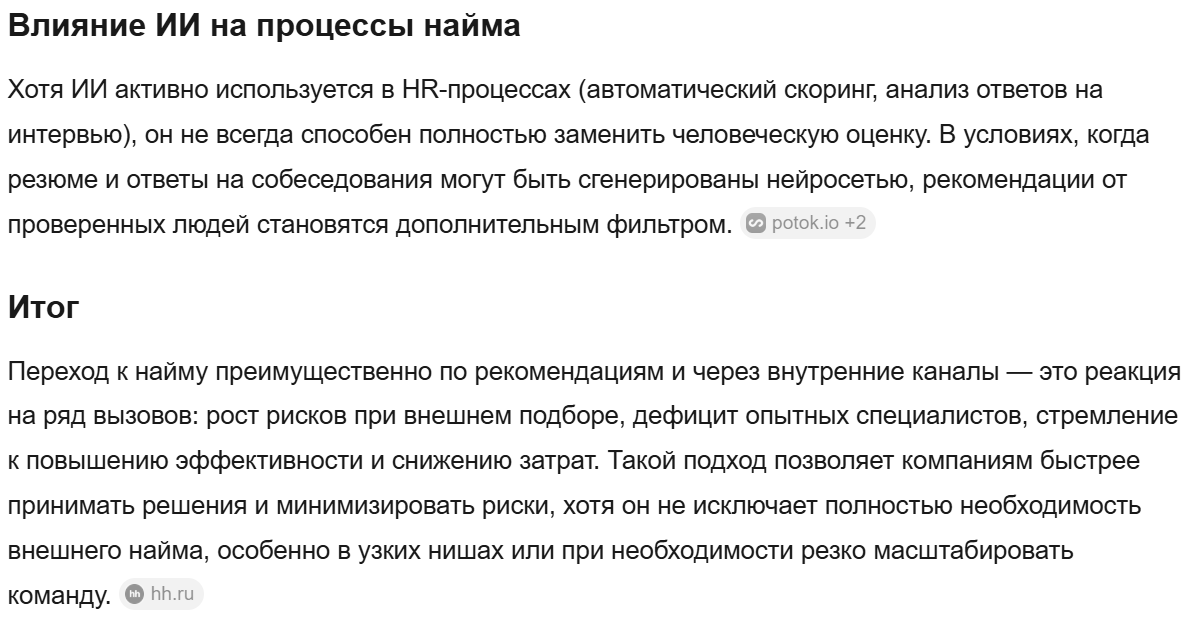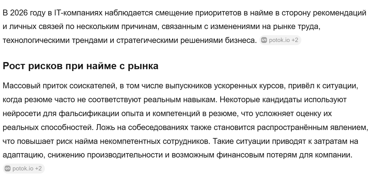 >>3632729 Ну даже такой процесс найма, через знакомых людей и прочих, скорее всего даст трещину в обозримом будущем. Вообще, найм исключительно через знакомых и друзей в моменте работает, но со временем это приведет к тому, что люди будут просто за бабки продавать рефералки на черном рынке. В школе Назарова это уже и происходит, за бабки ты там рефералку можешь купить в любую +- крупную контору в России.