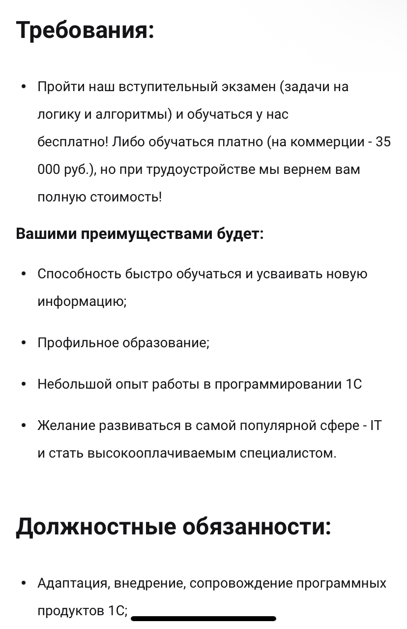 >>3512257 А смысл то это делать, это не ХХ ру, да и с таким требованиям и с нищенской зп я не думаю что адекватные люди с этим соответствующими требованиями пойдут к ним работать.