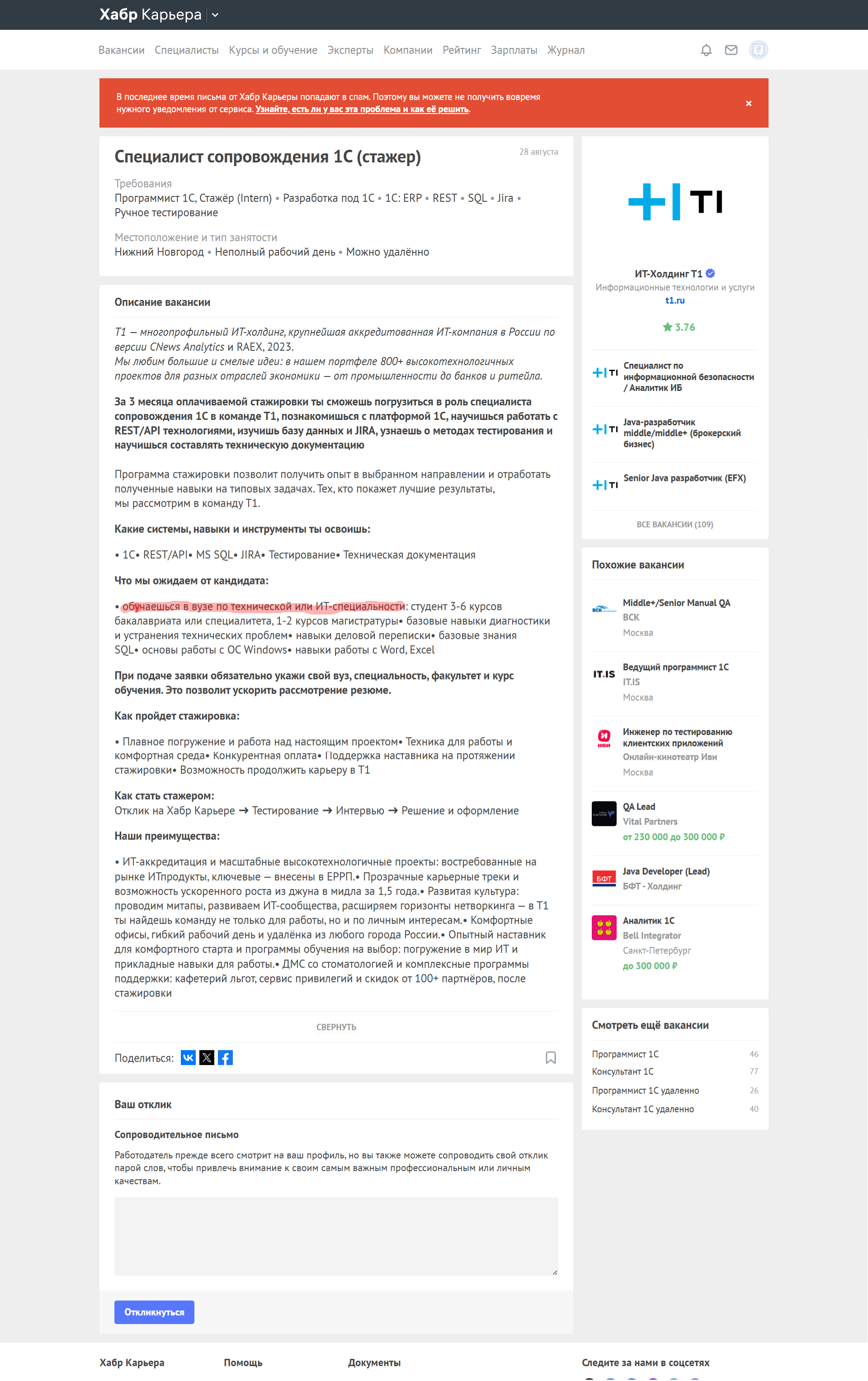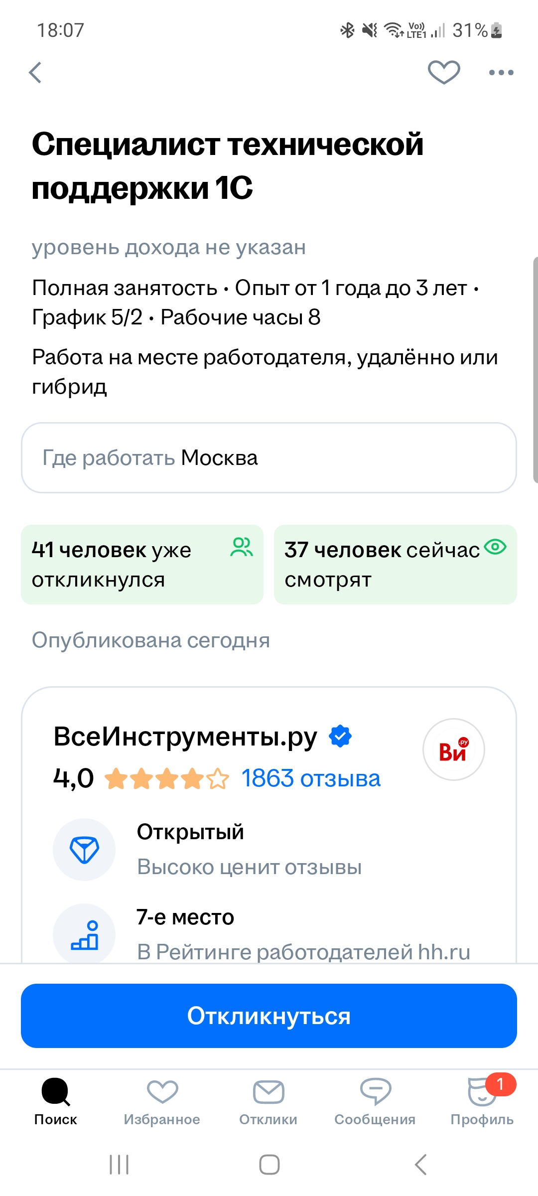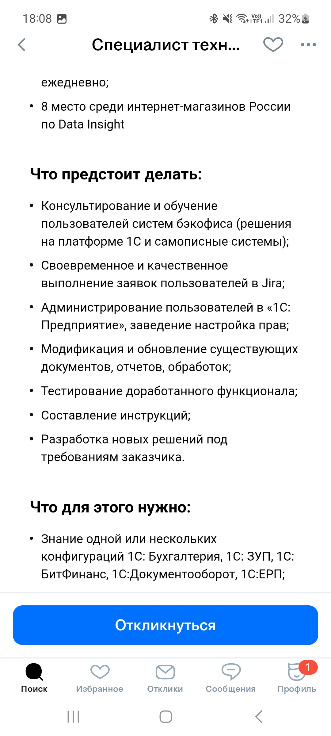 Что скажете? Грамотный анализ рынка? Мне кажется, я создан быть аналитиком. А ведь потом получив запись в трудовой "Аналитик", я смог в будующем легко трактовать это как: Data Analyst, продуктовый аналитик, бизнес-аналитик, системный аналитик. То есть перекат из 1С в другую область легчайший, надо лишь получить харды каким-то образом, а запись в трудовой уже будет.