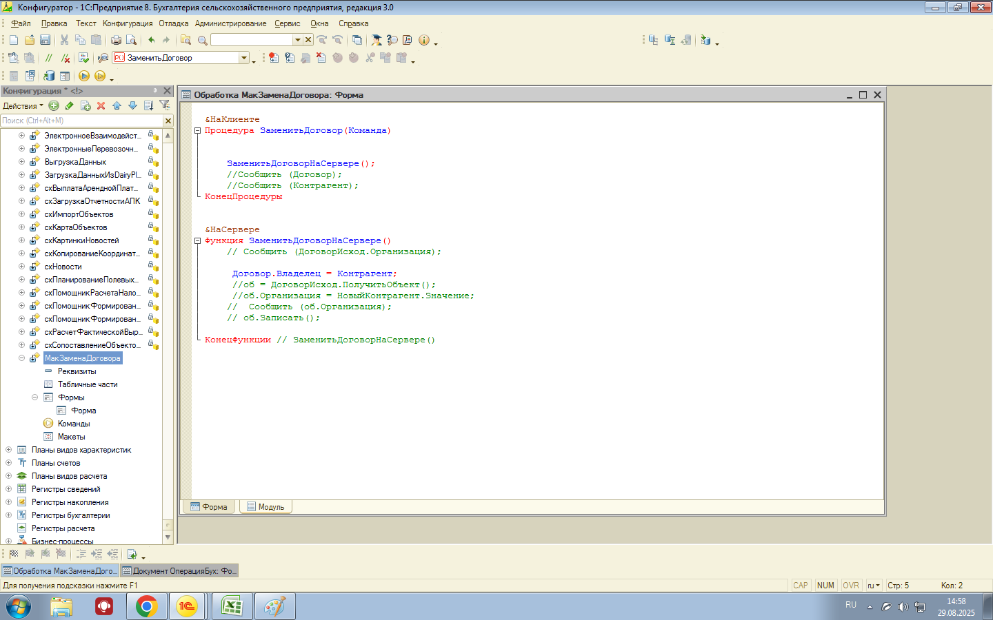 Анон, подскажи, почему не работает этот код и как правильно? Хочу внешней обработкой заменить в выбранном на форме договоре контрагента на выбранного на форме.