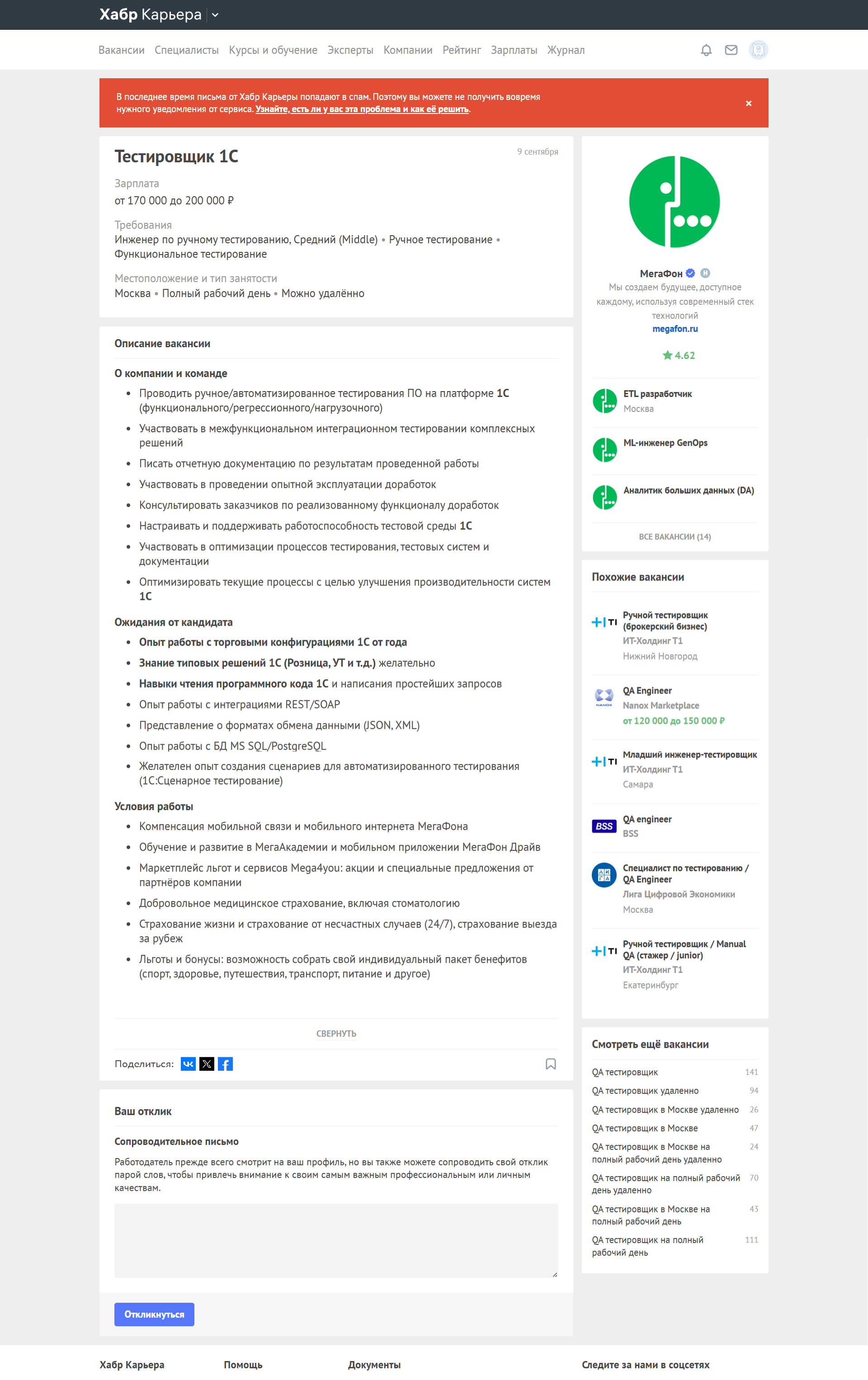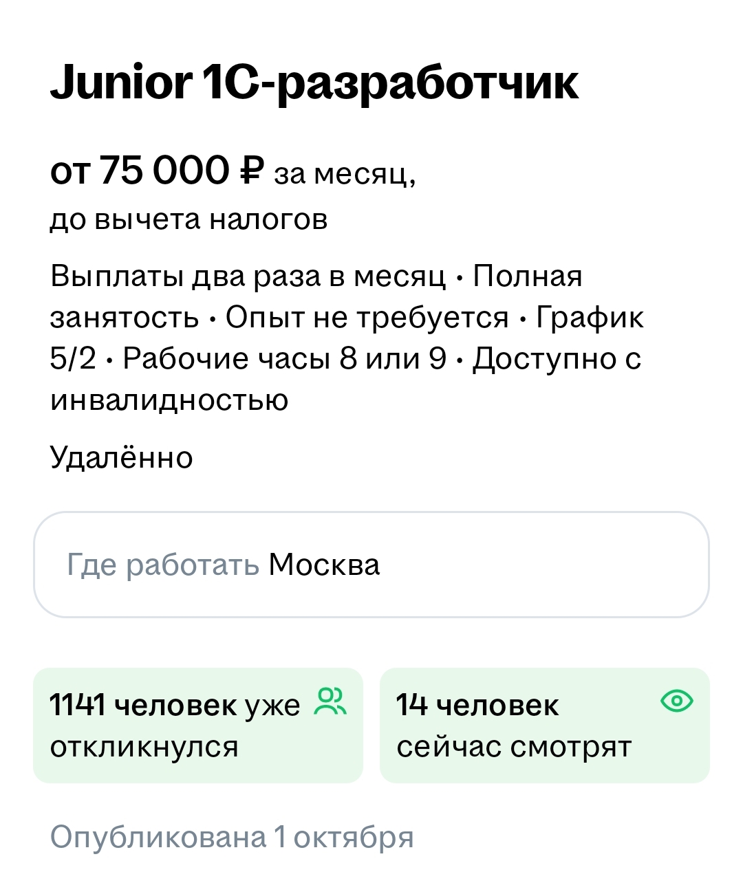 Единственная проблема в 1С в том, что в марте было 1450 вакансий "1С программист" на удалёнке, а сейчас меньше 800.