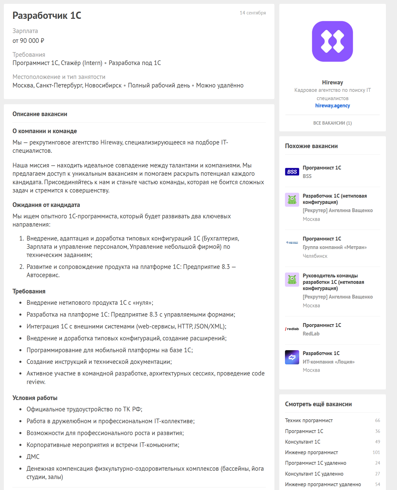 >>3547239 Так это просто кадровое агенство, они ищут специалистов и может быть их потом куда-то устраивают, даже список требований и условий "общий", разве не так?